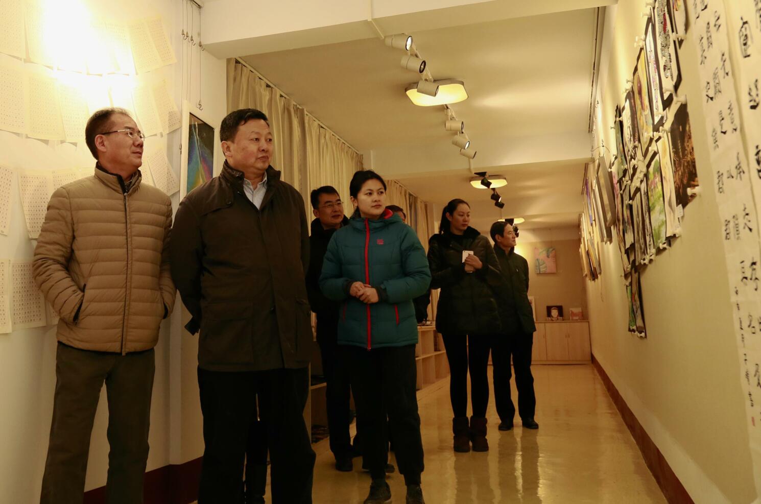 1月10日下午,学院党委书记肖明胜来到北校区艺术长廊,参观了中专教学部第二届师生艺术作品展。学院党政办公室主任冯永光,中专教学部党政负责人及部分师生一起参观。