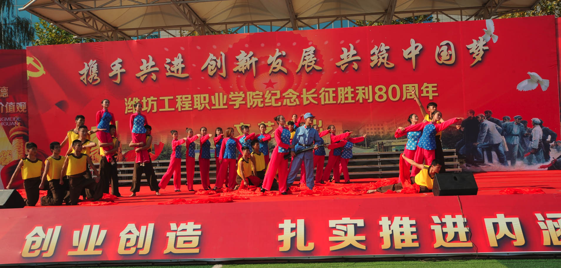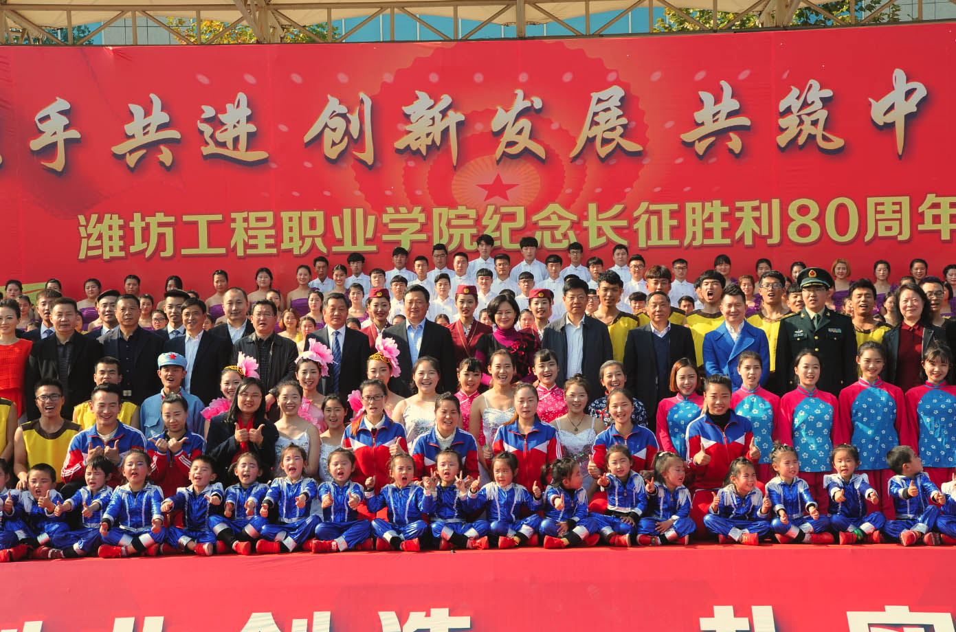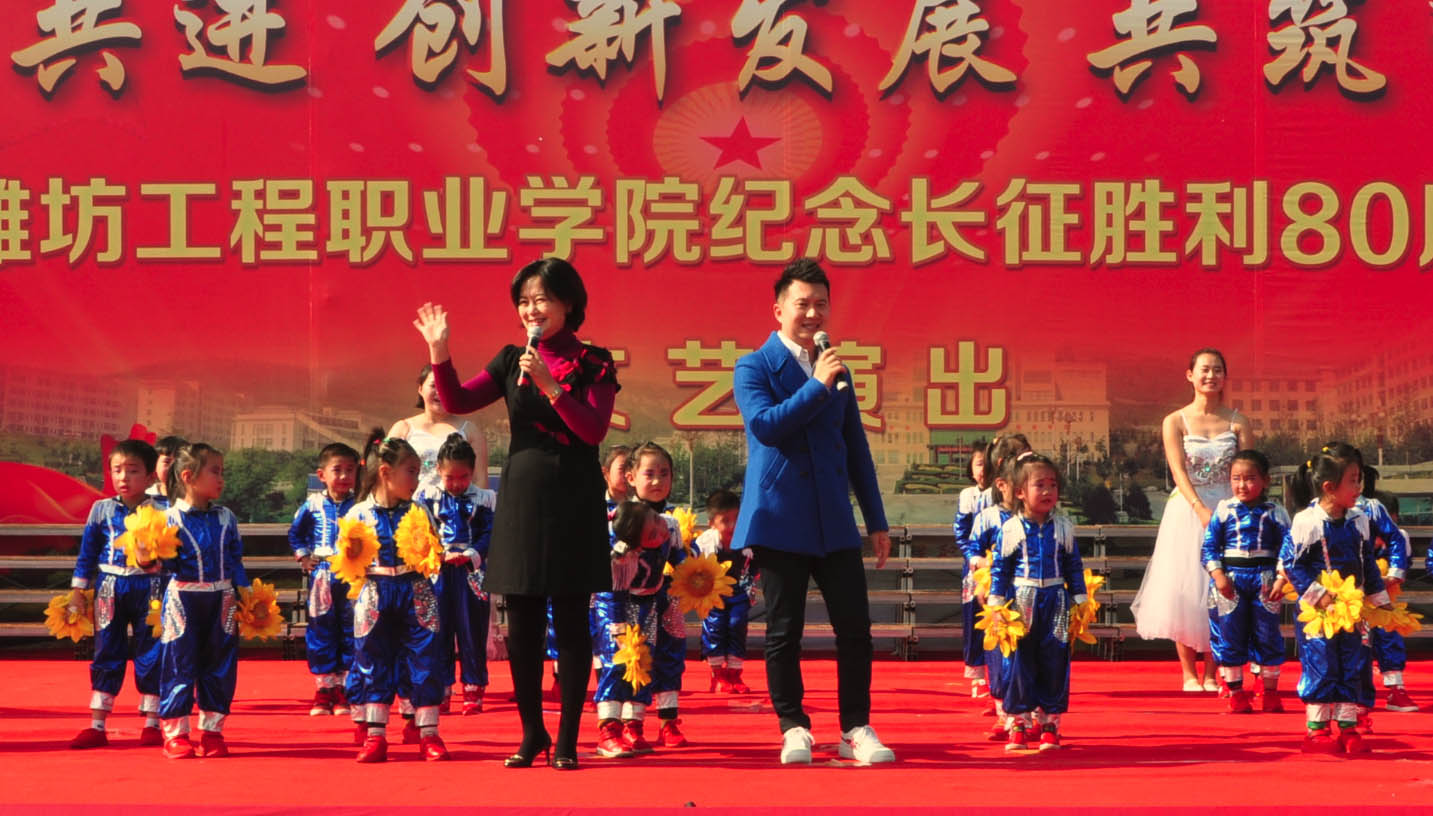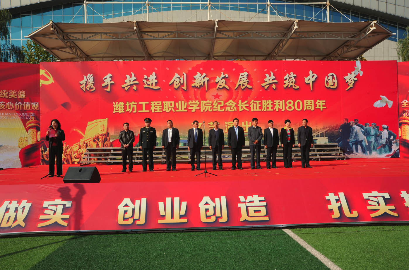 共筑中国梦”为主题的纪念红军长征胜利80周年文艺演出在新校区田径场隆重举行。潍坊市委宣传部常务副部长、市委高校工委副书记丁汉邦,火箭军青州士官学院政治部副主任李汶远,青州市委宣传部常务副部长郇长民,潍柴大学校长栾玉俊,副校长王成,我院党委书记肖明胜,院长高立伯等院领导出席活动现场。本次演出特邀中央电视台著名青少年节目主持人鞠萍姐姐、绿泡泡耿晨晨、黄炜联袂主持。