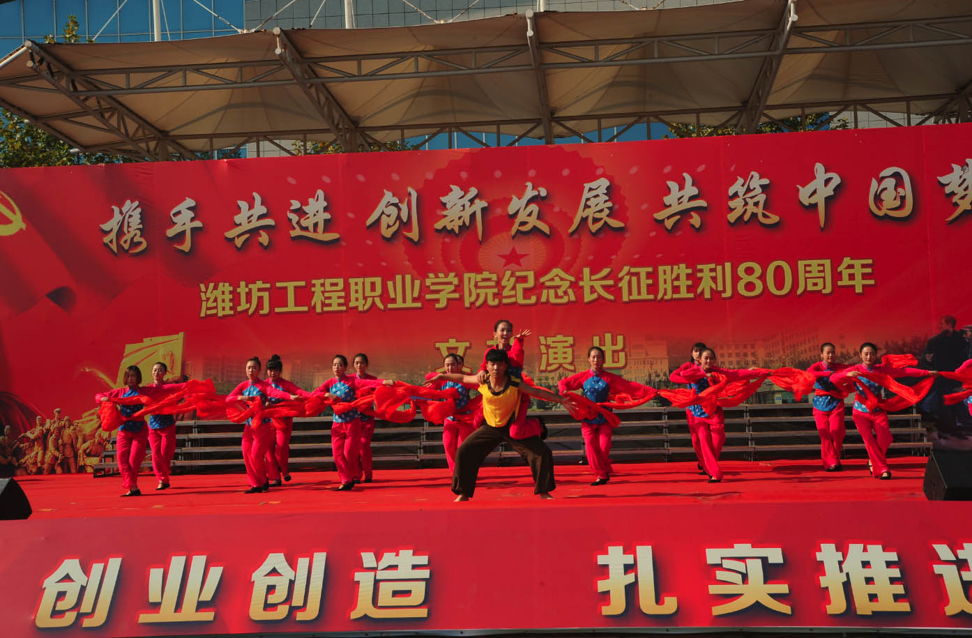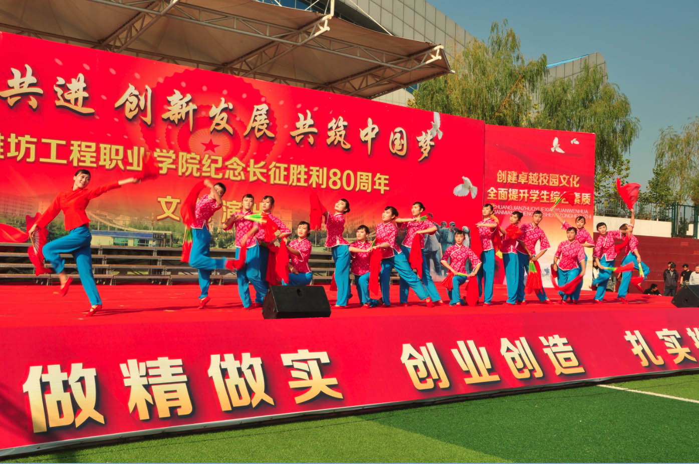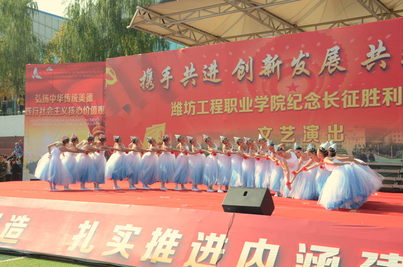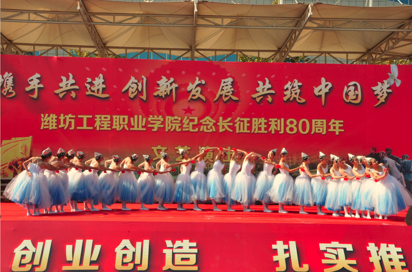 共筑中国梦”为主题的纪念红军长征胜利80周年文艺演出在新校区田径场隆重举行。潍坊市委宣传部常务副部长、市委高校工委副书记丁汉邦,火箭军青州士官学院政治部副主任李汶远,青州市委宣传部常务副部长郇长民,潍柴大学校长栾玉俊,副校长王成,我院党委书记肖明胜,院长高立伯等院领导出席活动现场。本次演出特邀中央电视台著名青少年节目主持人鞠萍姐姐、绿泡泡耿晨晨、黄炜联袂主持。