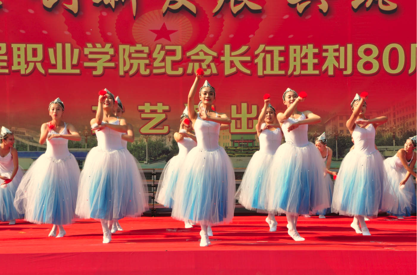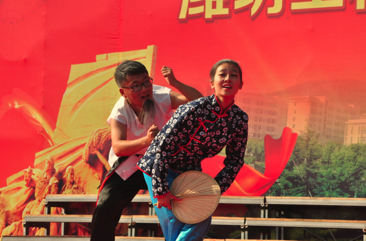 随后,校政行企军齐聚一堂,为大家献上了一场精彩的视听盛宴。火箭军士官学院的小伙子,用他们特有的方式表达了对党和部队的热爱;青州市委宣传部选送的《红灯记》、《沙家浜》现代京剧对唱,更是将国粹艺术展现的淋漓尽致;同台演出的还有潍柴集团和卡特彼勒等合作办学行业、企业的代表,以及福贝幼儿园的小朋友们。节目异彩纷呈,形式多样,熔传统与时尚于一炉,集古典与现代于一体。有美轮美奂的舞蹈《向天歌》,也有气势如虹的群舞《东方红》;有经典曲目《我和我的祖国》,也有弘扬民族气节的舞蹈《九儿》;更有师生们自编自演的情景剧。鞠萍姐姐、绿泡泡与福贝幼儿园的小朋友同台演出,更是将演出推向高潮。演出在雄壮有力的大合唱《唱支山歌给党听》和校歌《我们奋力拼搏》中,圆满落下帷幕。