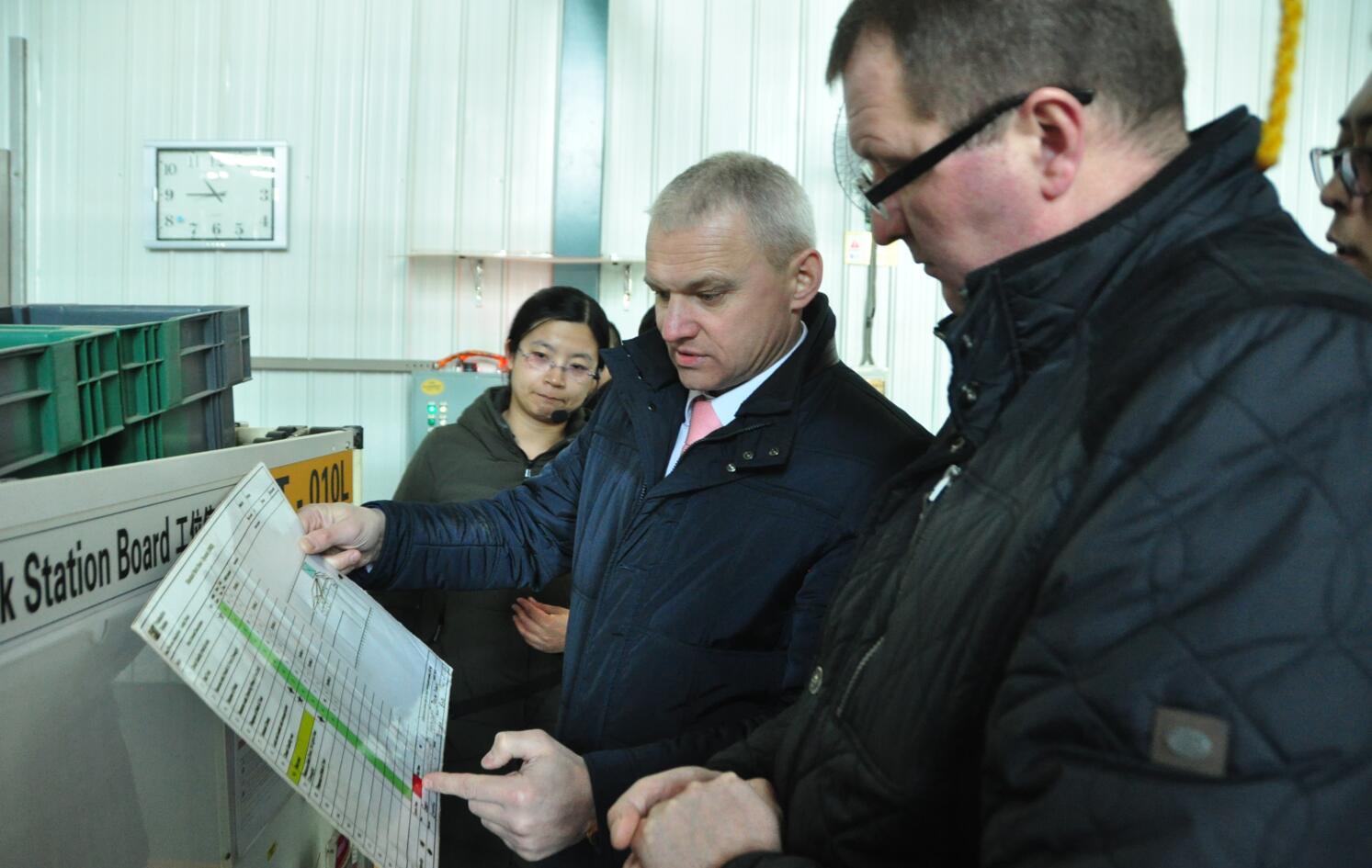 会谈结束后,王金明陪同客人参观了卡特彼勒培训中心和山东亚泰现代学制实训中心。Golubovski一行非常详细地了解了学生实习实训等内容,对我院取得的办学成就表示认可和高度赞扬。