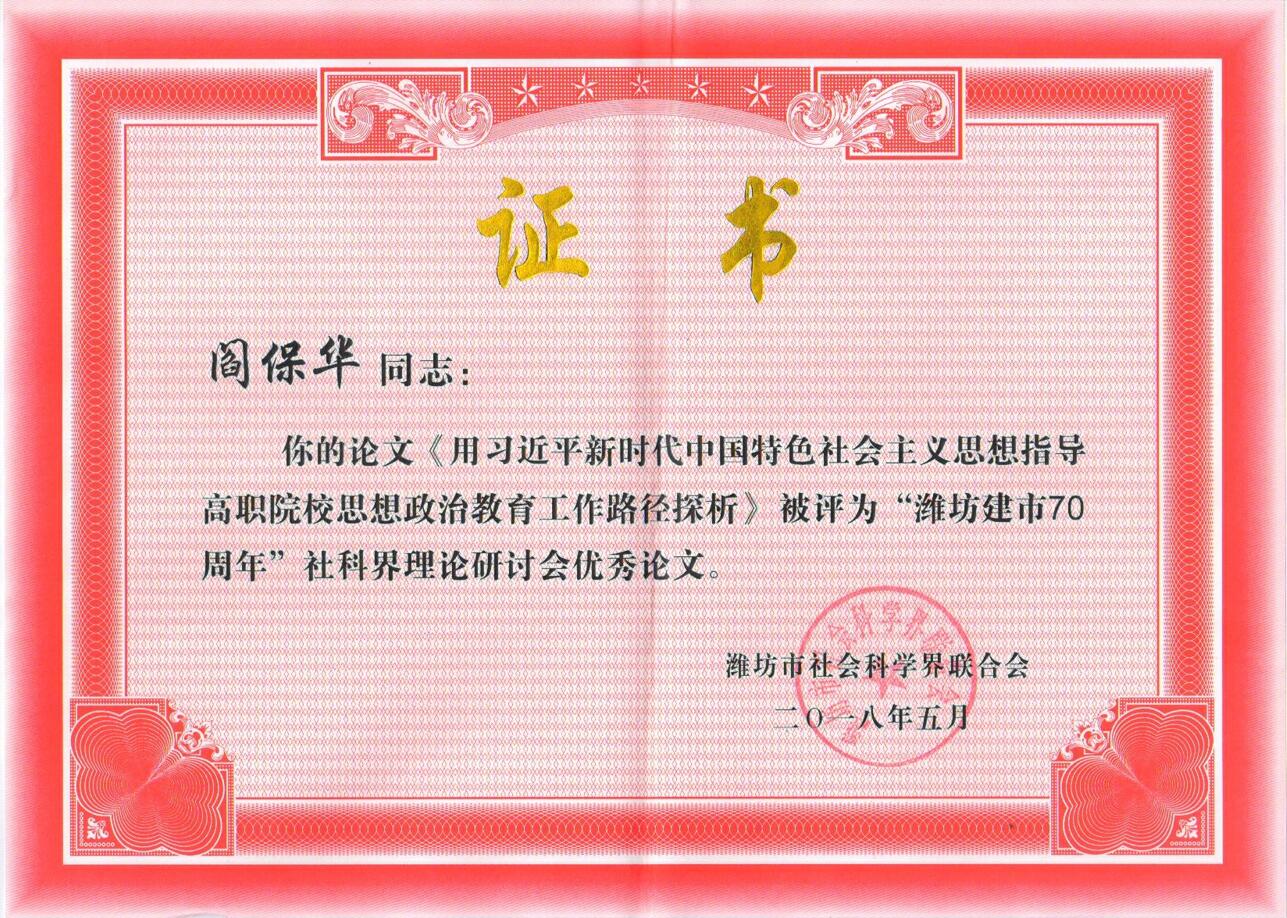 研讨会上,我院纪委监察审计处处长阎保华的论文“用习近平新时代中国特色社会主义思想指导高职院校思想政治教育工作路径探析”被评为优秀论文。文章指出,高职院校“大思政”育人工作必须坚持以习近平新时代中国特色社会主义思想为统领,以培育和践行社会主义核心价值观为主线,以立德树人为中心环节,以坚持马克思主义为理论基础支撑,以改革创新为主抓手,以构建新体制机制为保障,突出把思政工作贯穿到教育教学全过程,努力构建整体联动、协同一致、合力育人的大思政工作新格局,推动高职院校思想政治教育工作迈上新台阶,为做好新时代思想政治工作提供可借鉴的经验和启示。