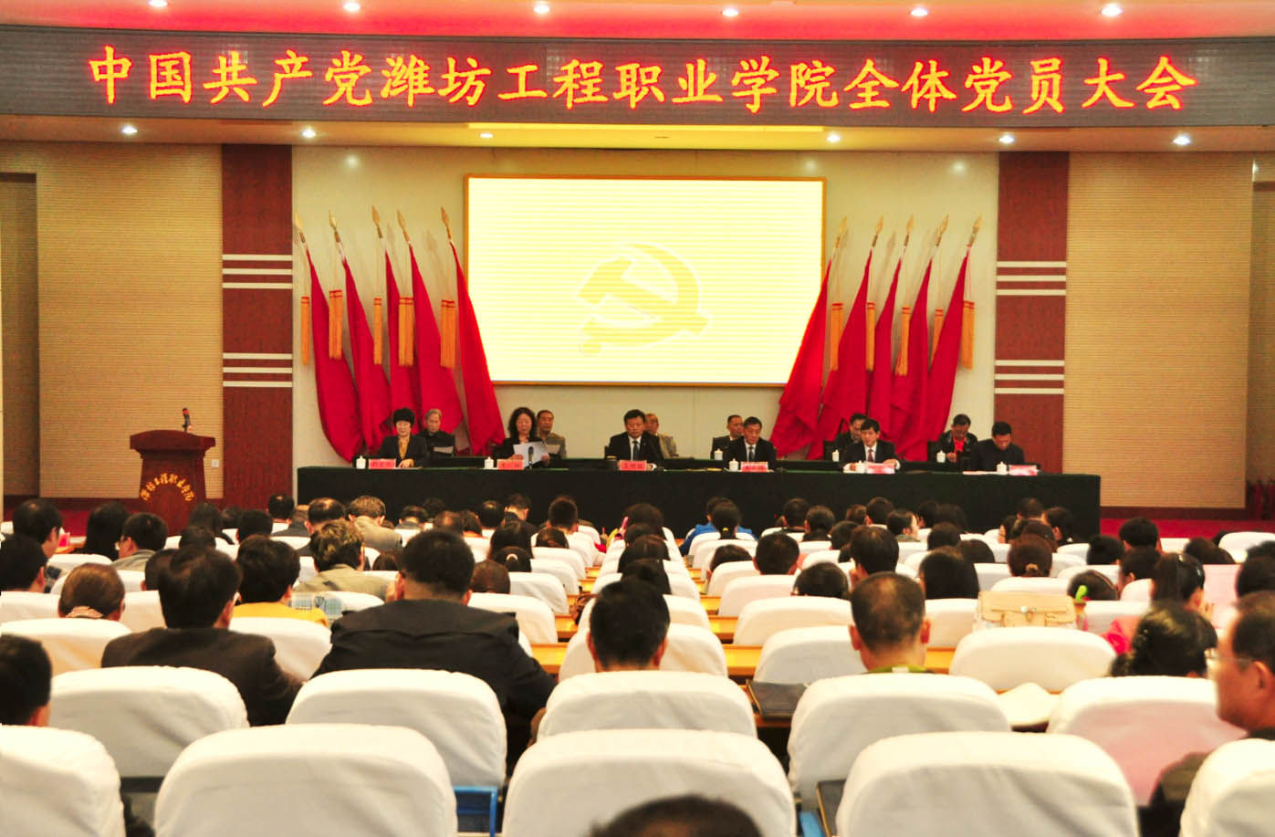 10月20日下午,中国共产党潍坊工程职业学院党员大会在学术报告厅隆重召开。大会听取和审议了学院党委工作报告,选举产生了5名党委委员和7名纪委委员。院领导肖明胜、高立伯、李琳、王金明、那菊华、韩振华等出席了大会。