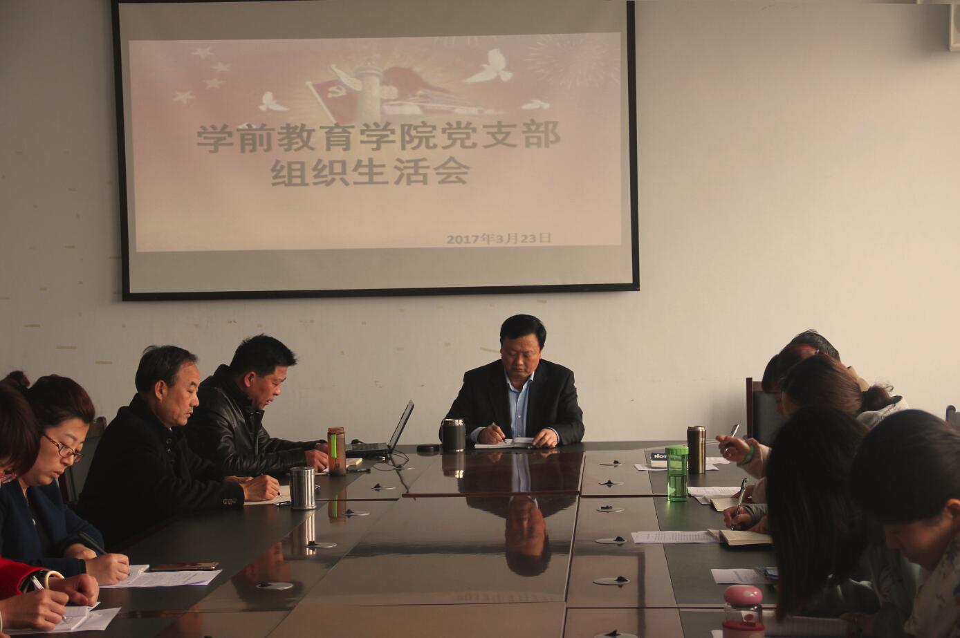 3月23日下午,学前教育学院党支部召开“两学一做”学习教育组织生活会。党委书记肖明胜参加会议。