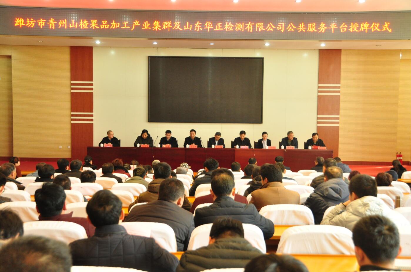 2月2日上午,“潍坊市青州山楂果品加工产业集群及山东华正检测有限公司公共服务平台” 授牌仪式在学术报告厅隆重举行。