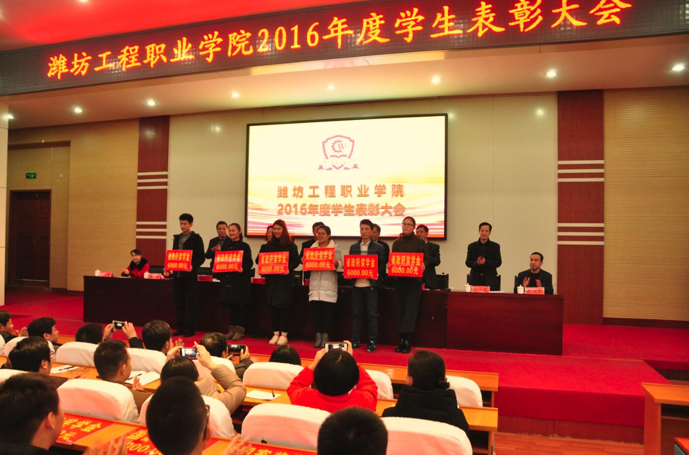 会上,副院长王金明宣读了学院表彰决定及国家奖学金、国家励志奖学金、省政府奖学金、省政府励志奖学金获奖名单,对获得优秀荣誉称号的54个学生先进集体和3607名优秀个人进行了表彰。