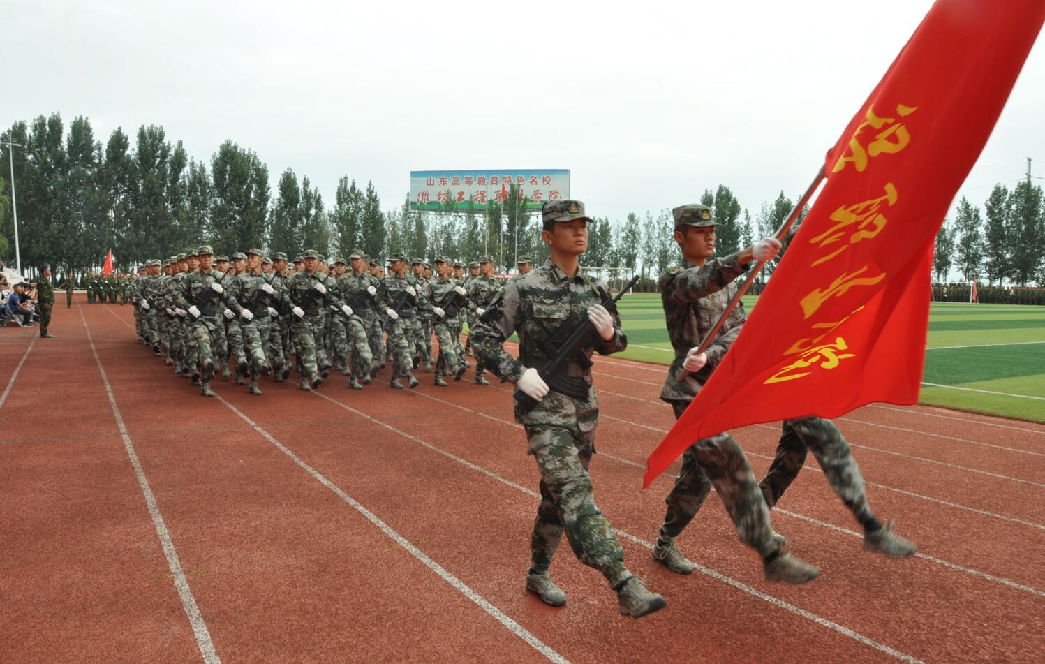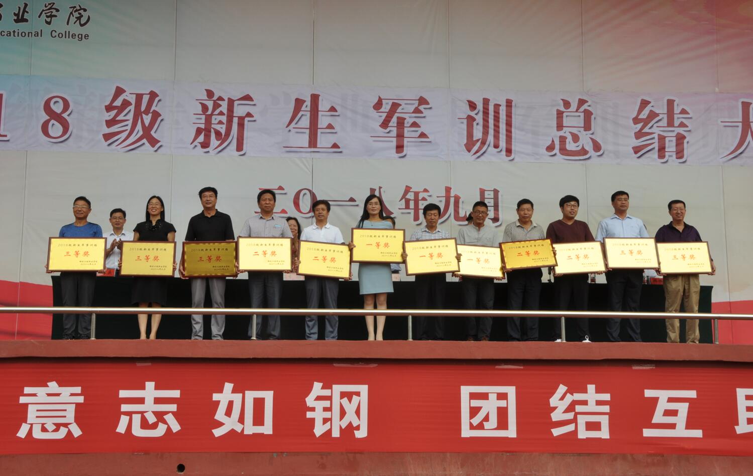 9月14日上午,我院2018级新生军训总结大会在操场隆重举行。学院院长高立伯,火箭军士官学校学兵三大队大队长张宁,院领导李琳、王金明、那菊华、韩振华、王守庆出席大会。相关部门、各系(院)负责同志、军训教官、教师代表和2018级全体新生参加了大会。大会由副院长韩振华主持。