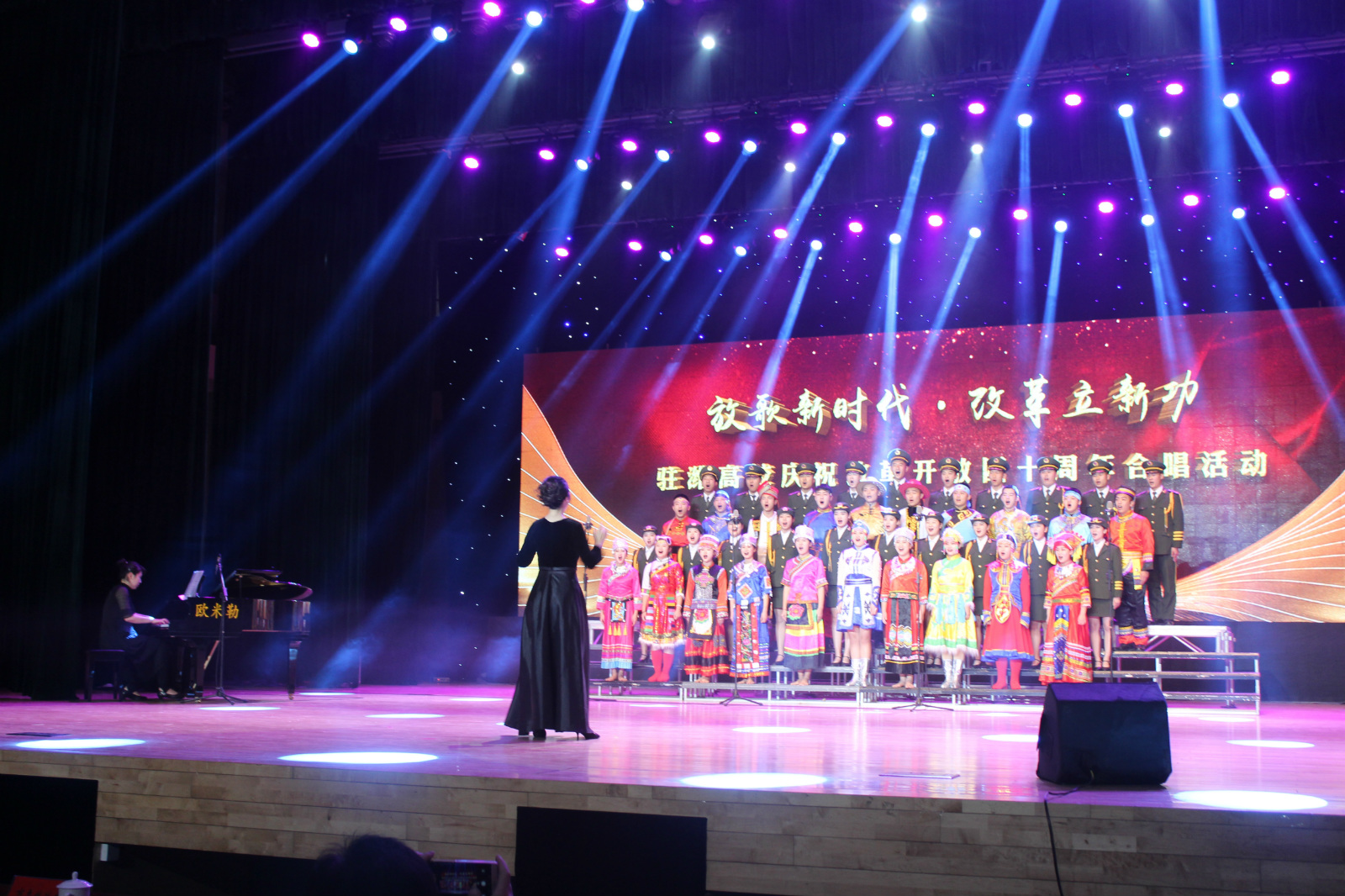 我院合唱队在演出中完美演绎了著名歌唱家廖昌永老师的《向往》,李玖联老师担任指挥,闫雨老师担任钢琴伴奏,合唱队唱出了热爱党、热爱祖国的心声,讴歌了伟大的新时代,展现了我院师生的朝气蓬勃的青春风采,表达了对祖国和学院更美好明天的向往。
