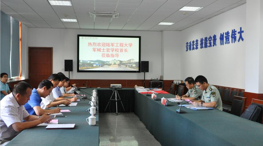 邵喜春处长介绍了陆军工程大学军械士官学院的基本情况。陆军工程大学军械士官学校主要担负全军军械士官、定向培养士官和部分技术兵的培训任务,同时,学校还担负部队军械干部及士官的短训、轮训、函授教育的培训工作,是全军“2110工程”院校之一。他介绍本次来院调研的主要目的是对接双方专业,签订战略合作协议,达成后续人才培养协调机制。