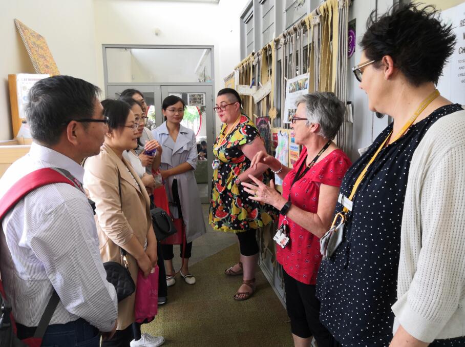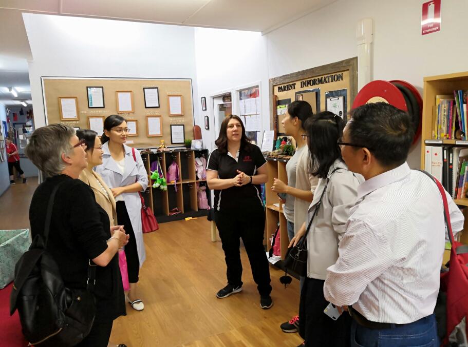 在澳方幼儿教育与护理学院,代表团一行拜访了该院主任Jane及办公室主任Helen,洽谈幼儿教育专业中外合作办学项目具体事宜,对接该专业课程设置、课程标准及教学内容组织,交流学习双方专业的教育教学工作和相关经验与做法;就澳洲教育体系、教育理念、办学特色、教学模式以及通识教育课程建设经验等进行交流学习;将我院的学前教育专业标准、教科书等资料赠送给该院。代表团还拜访了3月份到我院任教培训的Kathleen Ziemer教授,就学前教育专业(国际班)师生的后续学习研究情况及继续培训事宜进行交流;现场观摩了Kathleen Ziemer教授讲课,学习其授课方法及以学生为中心的教学模式;代表团参观了该院两个实训基地Attwood Childcare和Gowrie Kindergarten,与基地教师Natashi和Anna Russel以及实习生等进行了座谈,交流研讨墨尔本幼儿园的教育理念、课程特色及师资培训制度。