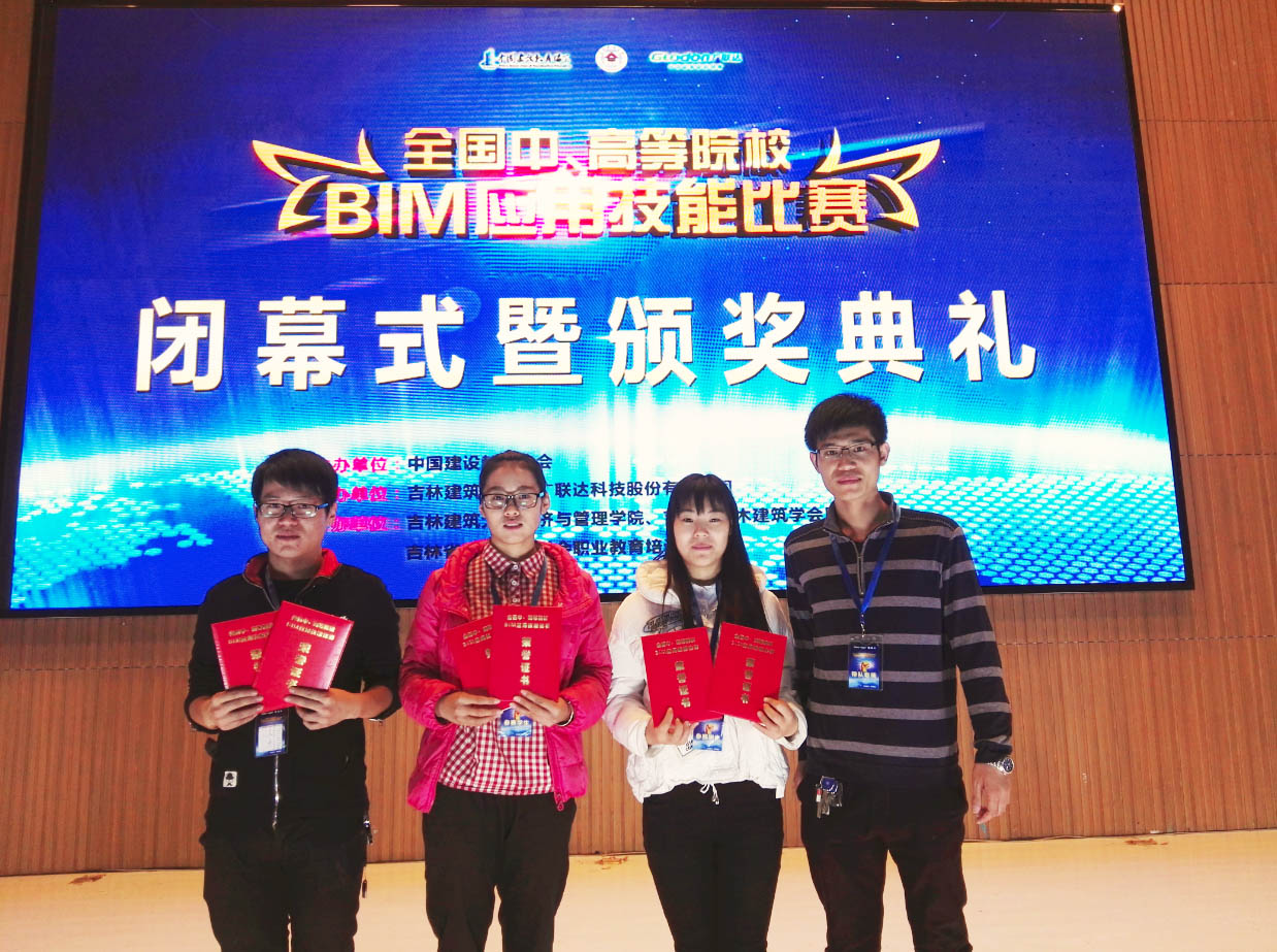 本届BIM大赛共有来自吉林建筑大学、山东建筑大学、沈阳建筑大学和山西财经大学等516所院校参赛,参赛学生共计1686人,带队老师800多人。我院建筑工程系教师韩琪、王广军和隋浩智指导的2015级学生李雪峰、凌苗苗和李芳组成的代表队获得BIM施工管理沙盘及软件应用大赛团体二等奖,展示了我院学生良好的团体协作精神和职业技能水平。