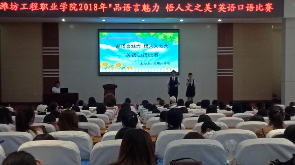 为了以赛促教、以赛促学,进一步激发学生学习英语的积极性,提高高职高专学生运用英语进行职场交际的综合素质,结合学院技能竞赛月活动,应用外语系于2018年6月7日下午两点在学术报告厅举办了"品语言魅力 悟人文之美"英语口语大赛。应用外语系的教师以及外教David、Alex担任此次大赛的评委。