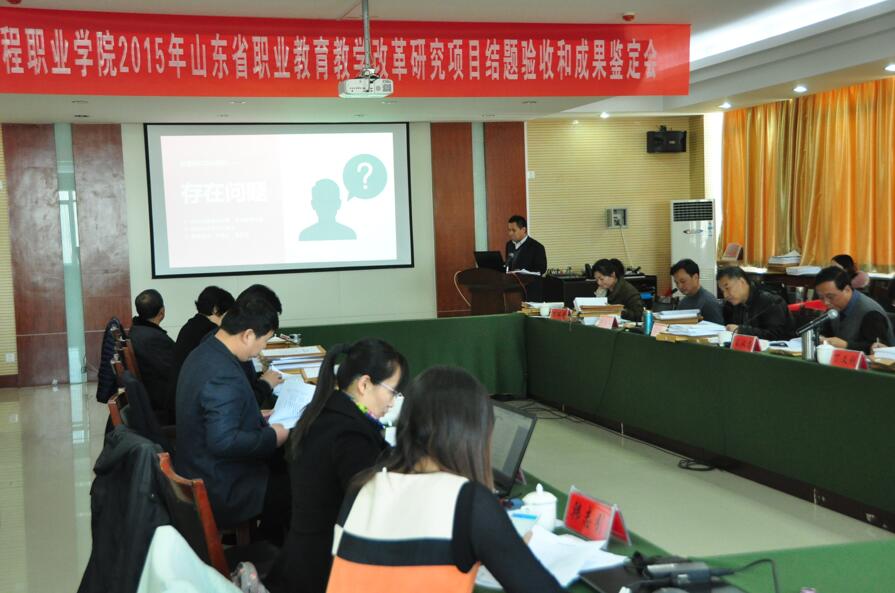 12月8日上午,按照省教育厅要求,我院省级教改项目结题验收和成果鉴定会在南校区图书馆606会议室召开,对2015年立项的7个省级教改项目进行结题验收与成果鉴定。鉴定验收委员会主任委员由山东农业大学原校长助理王汉忠教授担任,成员由淄博职业学院党委副书记姜义林教授、山东科技职业学院副院长丁文利教授、山东交通职业学院副院长王建良教授、山东理工大学农业工程与食品科学学院院长刘元义教授、山东科技大学机械电子工程学院博士生导师万丽荣教授、东营职业学院教务处处长曹丽芳教授组成。学院党委书记肖明胜、纪委书记那菊华、副院长王守庆、各项目组成员、青年骨干教师参加了会议。副院长王守庆主持会议。