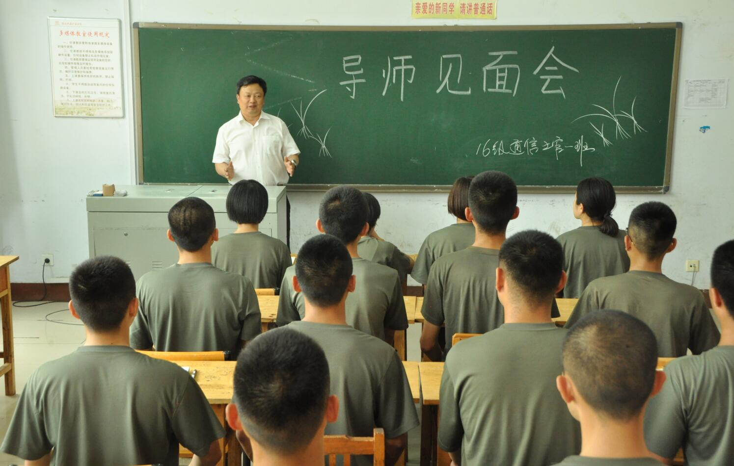 肖明胜在通信技术士官班见面会上,讲了我院今年实行班级导师制的意义,语重心长的为学生提出了三点希望:一是要有骨气、有血性、有胸怀、更要有保家卫国的本领、要有一技之长。二是要向典范学习,做人要争口气。三是要爱国、要励志、要求真、要实干。