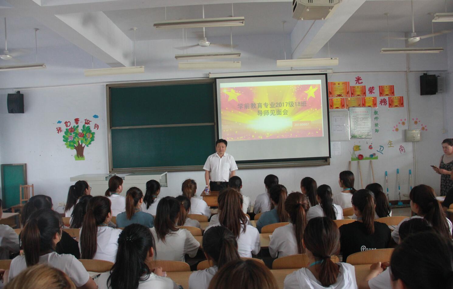 6月7日,潍坊工程职业学院党委书记肖明胜分别到2017级学前教育18班和2016级通信技术士官1班举行了导师见面会。