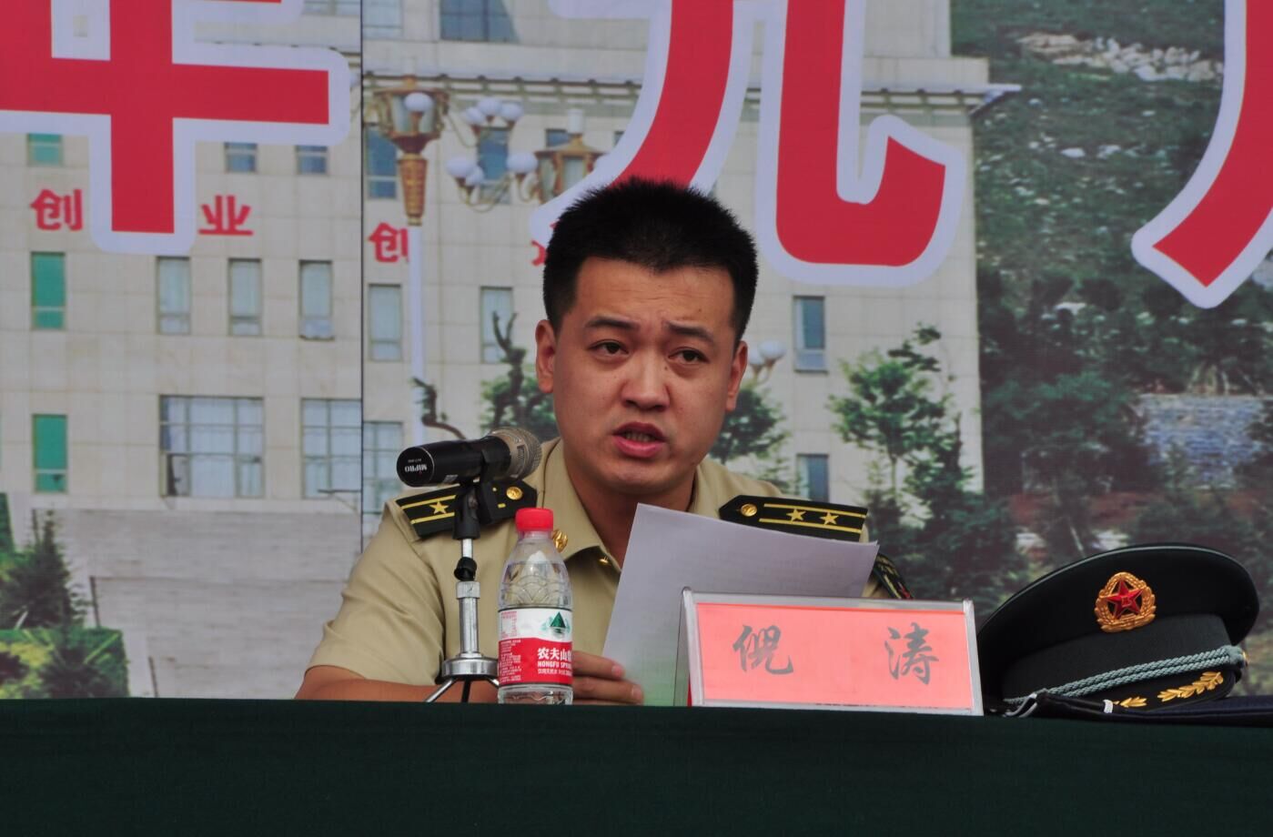 教师代表、高年级学生代表、新生代表分别发言。倪涛对承训教官和受训学生提出要求,要求他们要遵守纪律,服从指挥;端正态度,刻苦训练;创先进集体,树安全意识。