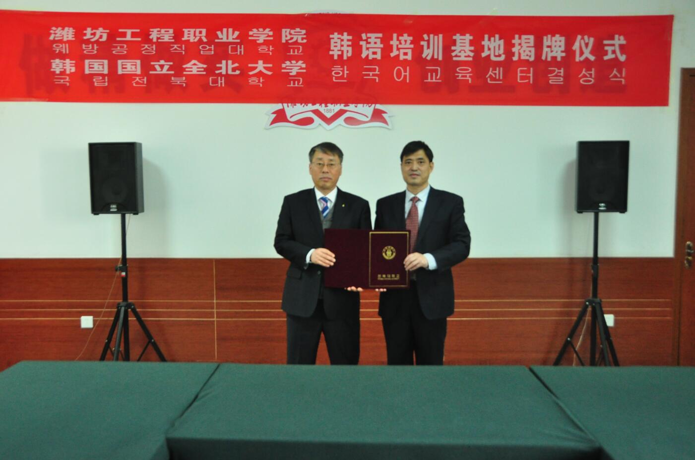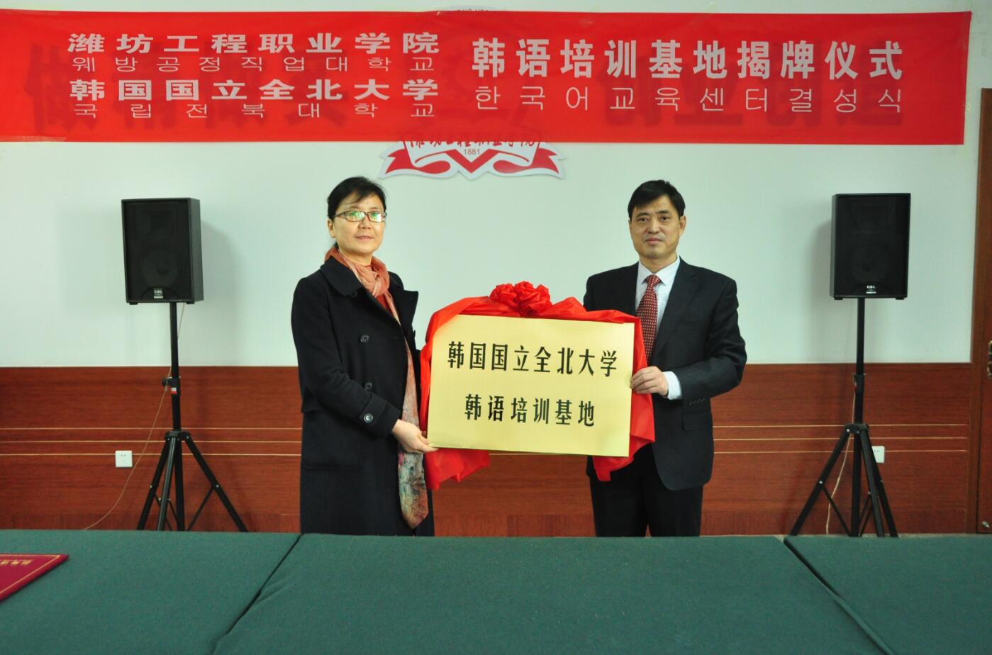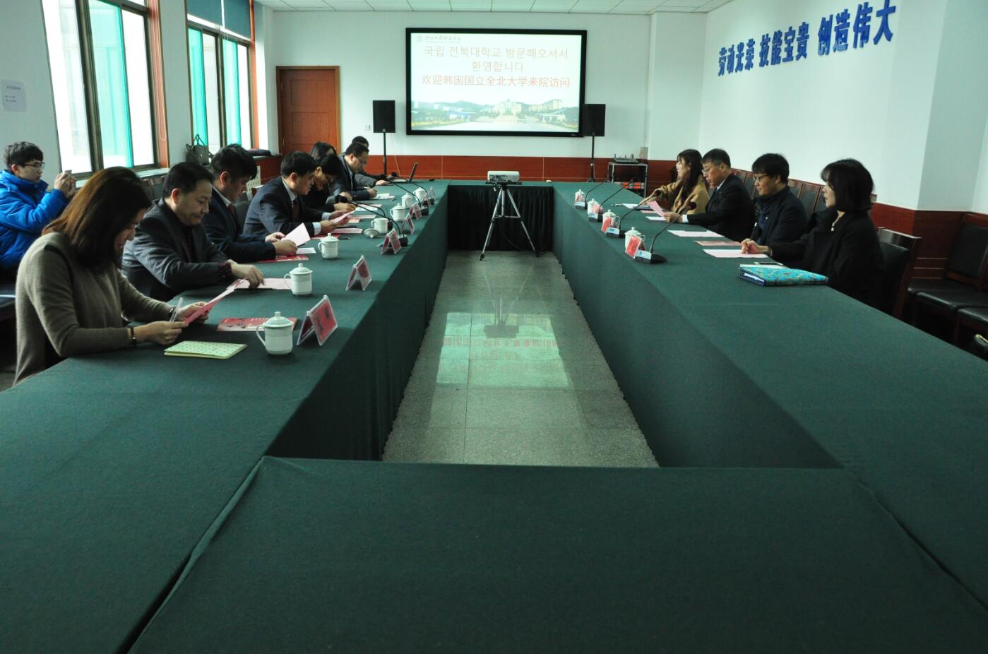 2月2日,韩国国立全北大学国际协力部行政室长金炳燮一行四人来院洽谈合作办学,并举行“韩语培训合作单位”揭牌仪式。副院长王金明热情接待了客人,党政办公室、继续教育学院、经济管理系有关人员参加了活动。