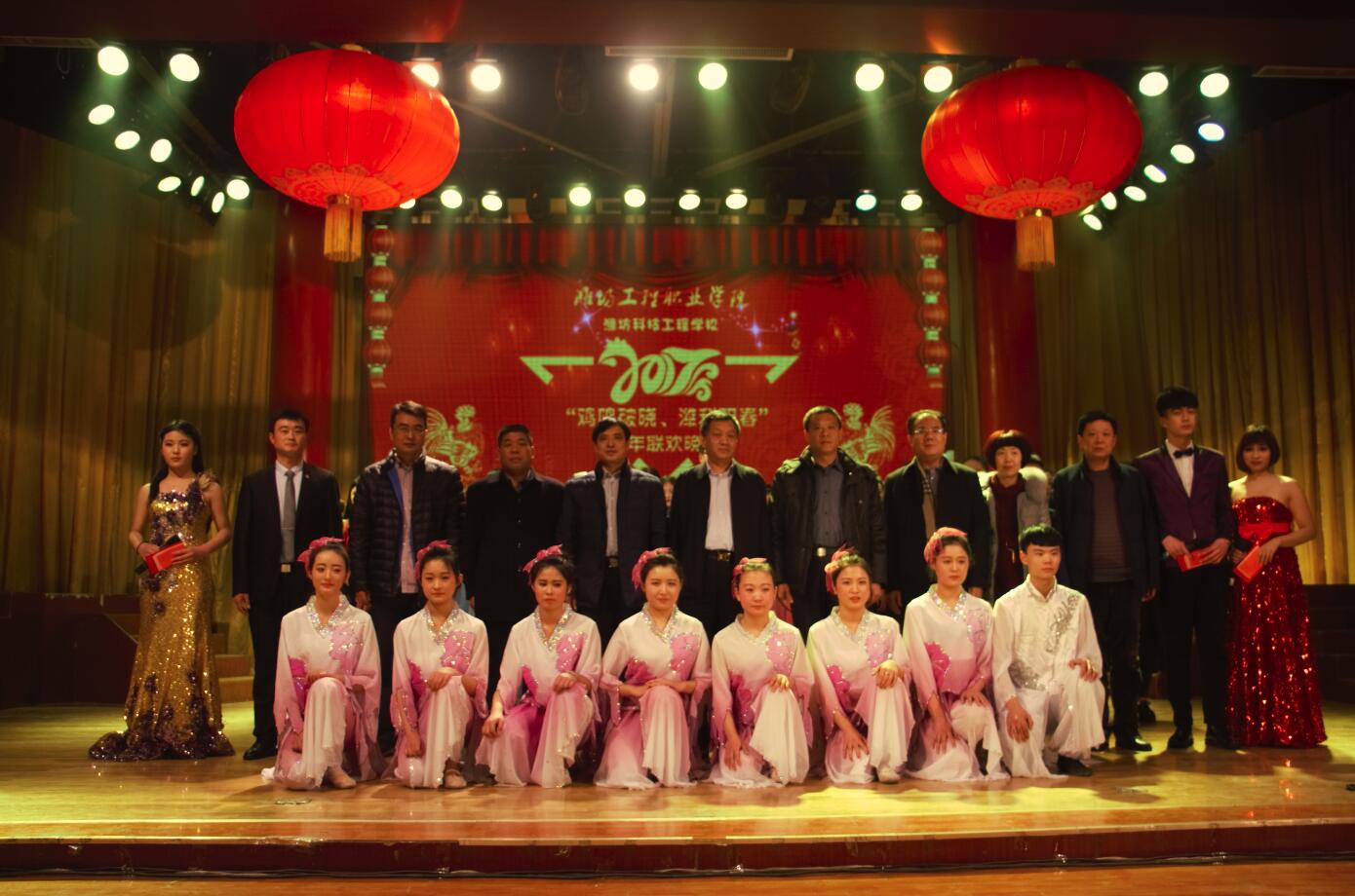 在欢快的旋律中,歌曲《向快乐出发》拉开晚会的帷幕,师生同台用嘹亮的歌声共同唱响对新年的期盼;《恋人心》舞姿婉约清新,伴奏凤吟鸾吹,令人心旷神怡;小品《不搞笑》讲述了几位曾经玩世不恭的学生在老师感化下逐渐认识到错误,并端正学习态度的故事,情节生动,不时引来现场观众掌声;街舞《seven》舞步劲爆,视觉冲击力十足,引爆全场,逐渐把晚会气氛推向高潮;相声《像个朋友》诙谐幽默,引来全场阵阵笑声;拉丁《曲奇曲奇》、爵士舞《Hate》展现活力青春,热辣的舞蹈,配上动感的音乐,再次将现场气氛推向高潮;歌曲《心雨》则让师生们重温了经典老歌,感受了别样的快乐;最后,一曲《共筑中国梦》以恢弘的气势、饱满的热情、优美的歌词、柔和的曲调,唱出了中国人对“中国梦”的期许,表达了人们为实现中华民族伟大复兴的中国梦不忘初心、继续前进的坚定信念。伴随着现场的掌声与欢呼声,联欢晚会落下帷幕。
