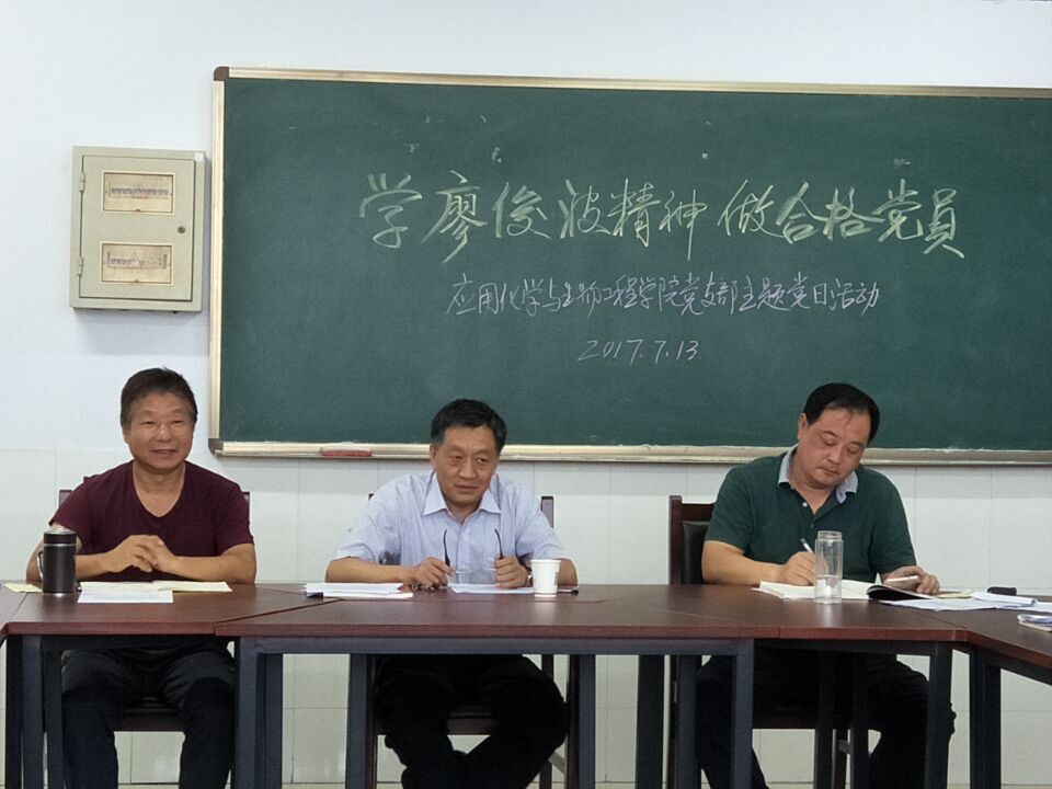 7月13日下午,应用化学与生物工程学院党支部在六号楼202会议室开展了“学廖俊波事迹,做合格党员”支部主题党日活动。本次活动由支部书记王水玉主持,院长高立伯参加活动并做总结发言,支部全体党员参与本次主题日活动。
