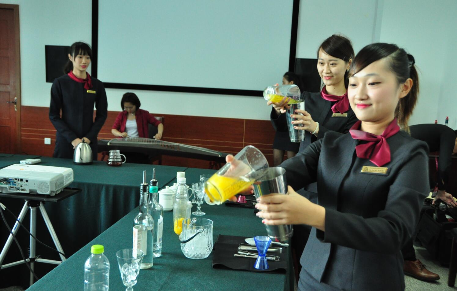 欢迎会上,两校学生进行了深入交流。伴随着我院学生现场演奏的优美的古筝曲,大仁科技大学学生表演了手冲咖啡、传统调酒、特色奶茶及花样调酒,精彩的表演、娴熟的技能赢得了阵阵掌声。我院在大仁科技大学研修的3名学生还与在校生进行了现场视频交流,整个欢迎会气氛热烈。此次座谈交流开启了两校师生交流的新的模式,通过面对面交流和互动,加深了友谊,增进了了解,意义深远。