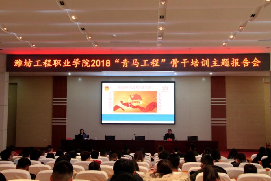 11月22日下午,学院2018届院级学生组织成立大会暨“青马工程”学生骨干培训班开班仪式在学术报告厅举行。副院长韩振华出席大会并讲话,团委学生处处长翟江主持会议,应用外语系党支部书记王兴芹做了“青马工程”学生骨干专题培训讲座。