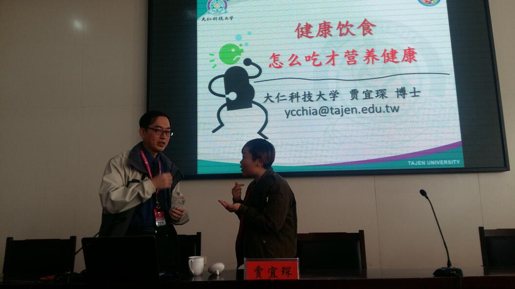 期间,大仁科技大学食品科技系贾宜琛博士为应用化学与生物工程学院的160余名师生做了5场精彩的报告。他以香椿和牛樟芝的研究为例分享了他及团队关于保健食品的开发应用成果;从餐厅厨房卫生维护到健康饮食再到肝脏疾病膳食疗养,不仅分享了食品卫生与安全相关知识,也为我院师生普及了营养新概念。贾博士采用互动讲座的形式,让师生们耳目一新,受益匪浅,不仅拓宽了我院的教科研思路,也对其今后的人才培养、教学实践模式具有很好的借鉴意义。