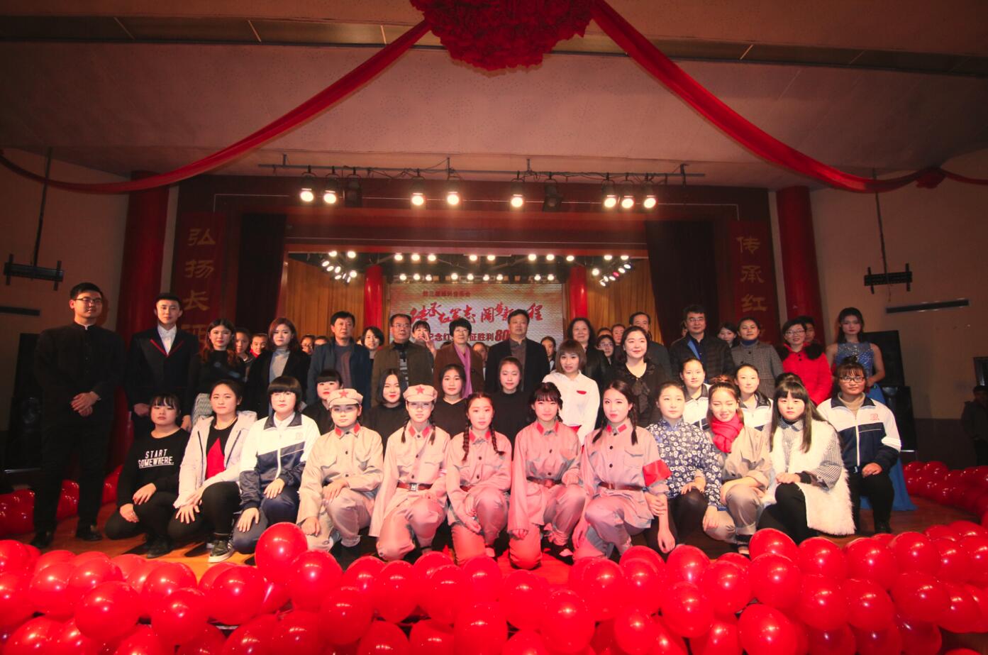 传承红军志,阔步新征程。中专教学部举办的纪念红军长征胜利80周年音乐会12月22日晚在我院北校区学生活动中心举行。学院党委书记肖明胜、党委副书记李琳、纪委书记那菊华等,与中专教学部1000多名师生一起观看演出,共同回望那段光辉岁月。