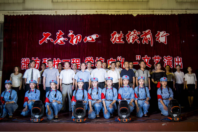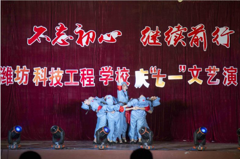 7月3日,中专教学部“不忘初心,继续前行”庆七一文艺晚会在北校区操场举行。学院党委书记肖明胜、副院长王金明出席晚会。军校共建单位驻青某部主任崔殿峰、政委刘东,全国孝老敬亲十大楷模、青州市王坟镇候王村支部书记冯先家应邀观看演出。中专教学部全体师生一起观看。