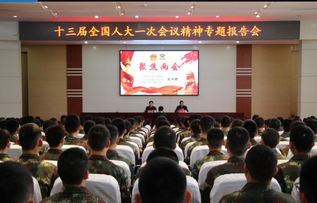 报告会上,王晓霞教授从大会的基本情况、大会的主要精神、做好定向培养直招士官提案、参会的收获和体会四个方面,宣讲了十三届全国人大一次会议精神,重点就政府工作报告、宪法修正案、监察法、国务院机构改革、选举新一届国家机构领导人员情况以及军队和国防建设等重大事项进行了全面详细的解读。