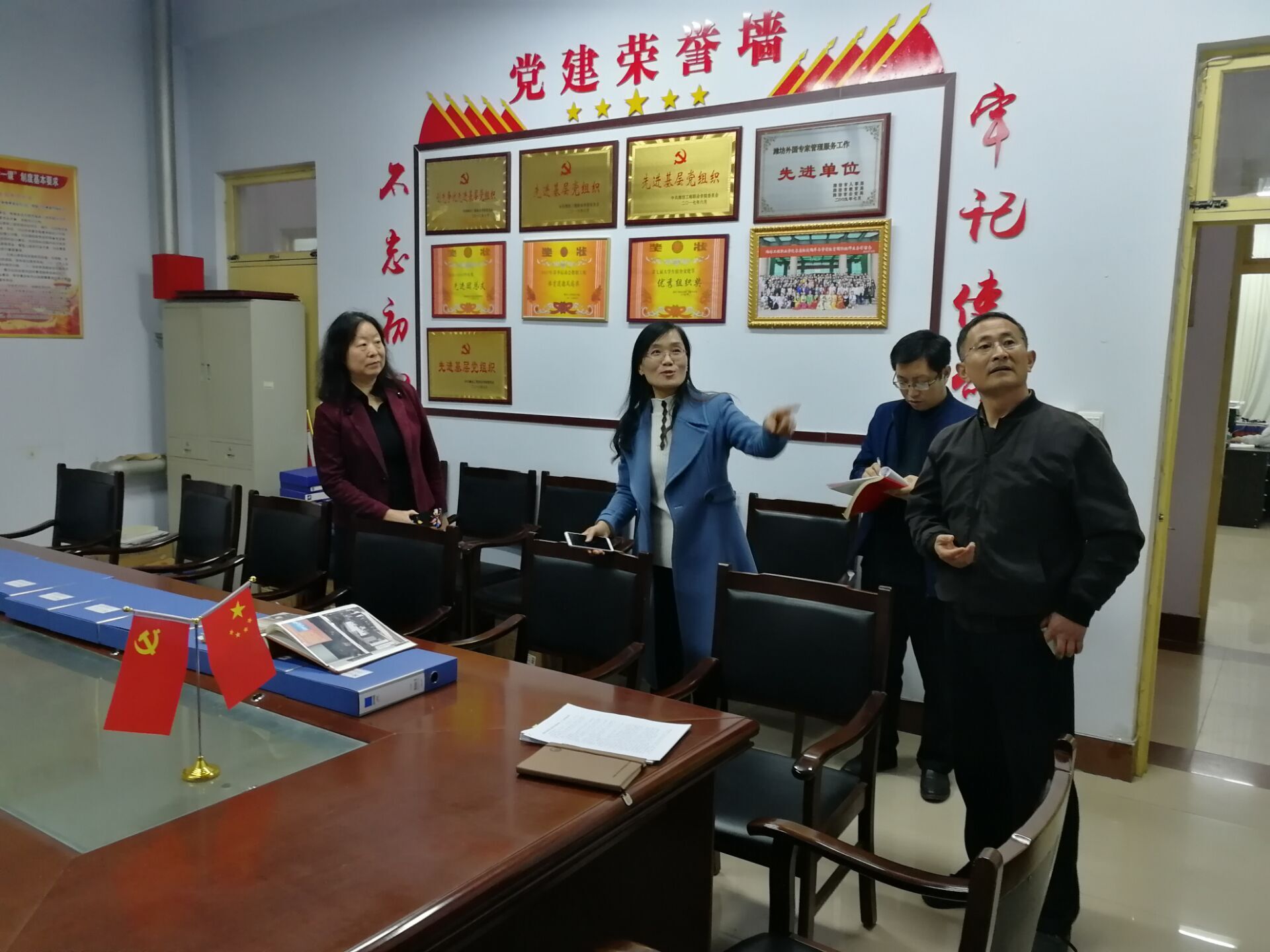李琳现场查看了党员活动室、党员谈心室的建设情况;检查了党务公开栏、宣传栏的布置情况;查阅相关党建资料的整理情况以及各项工作制度完善和落实情况。她对应用外语系党支部在创建“三化”基层党组织过程中开展的各项工作给予了充分的肯定,尤其肯定了该党支部“项目党小组+”促党建创新项目。同时对示范支部建设提出了很多宝贵的指导意见,她要求支部党建工作要继续深入寻求党建与业务工作融合突破点,积极围绕基层党组织“三个一”“三化”建设开展工作,切实发挥党建引领作用。
