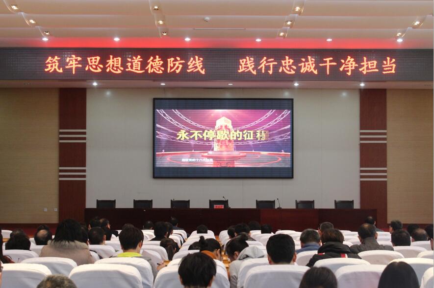 为进一步推动全面从严治党向纵深发展,我院开展“筑牢思想道德防线、践行忠诚干净担当”专题警示教育活动,加强党风廉政教育,增强党员干部拒腐防变能力。12月28日下午,我院组织副科级以上干部观看《永不停歇的征程》警示教育片。
