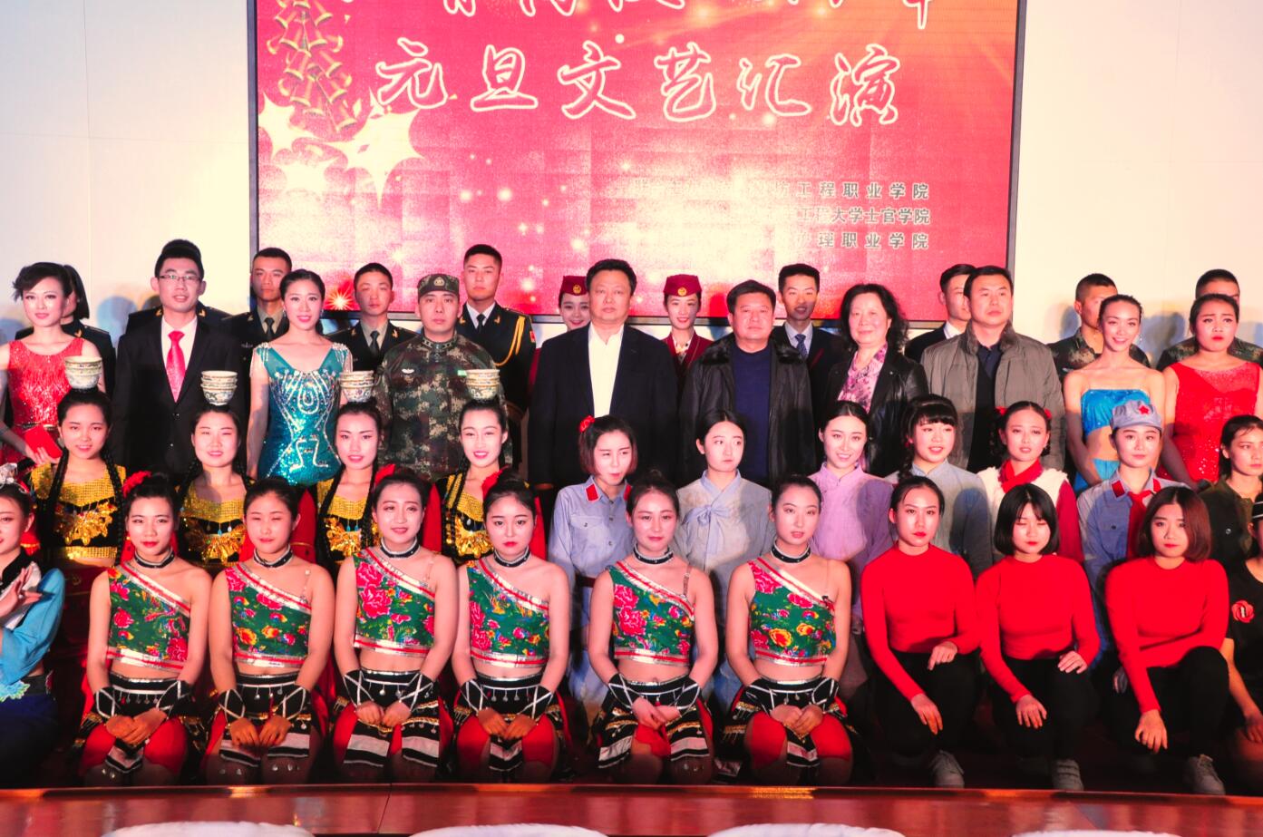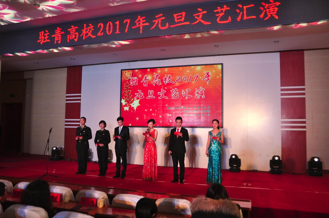 丰收的锣鼓敲响崭新的岁月,绽放的寒梅书写春天的讯息。在举国上下认真学习贯彻落实全国高校思想政治工作会议精神之际,满载着技能型特色名校建设取得优秀等级的丰硕成果,我院与火箭军工程大学士官学院、潍坊护理职业学院共同举办的“驻青高校2017年元旦文艺汇演”,于12月27日下午在我院报告厅隆重举行。潍坊护理职业学院党委副书记刘海波,火箭军工程大学士官学院政治部宣传科科长刘顺成,我院党委书记肖明胜、院长高立伯、党委副书记李琳出席文艺汇演。