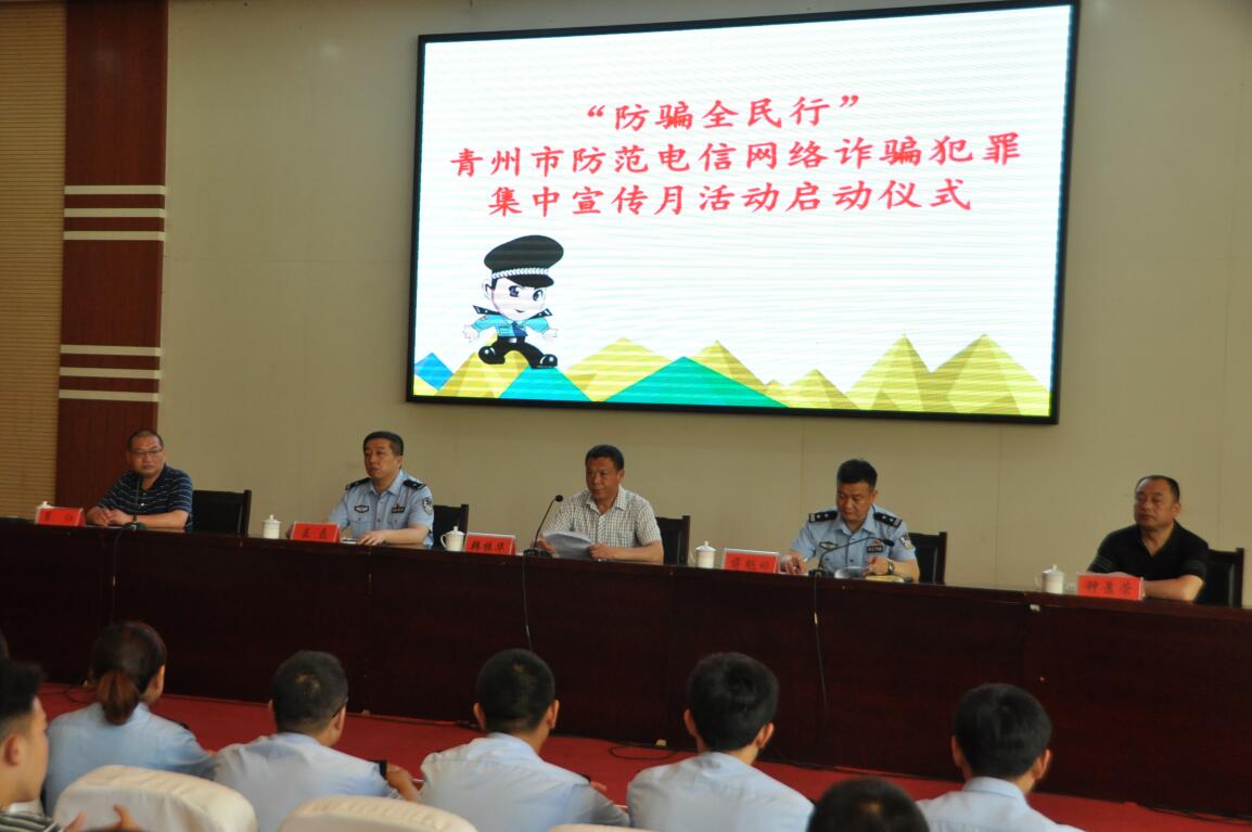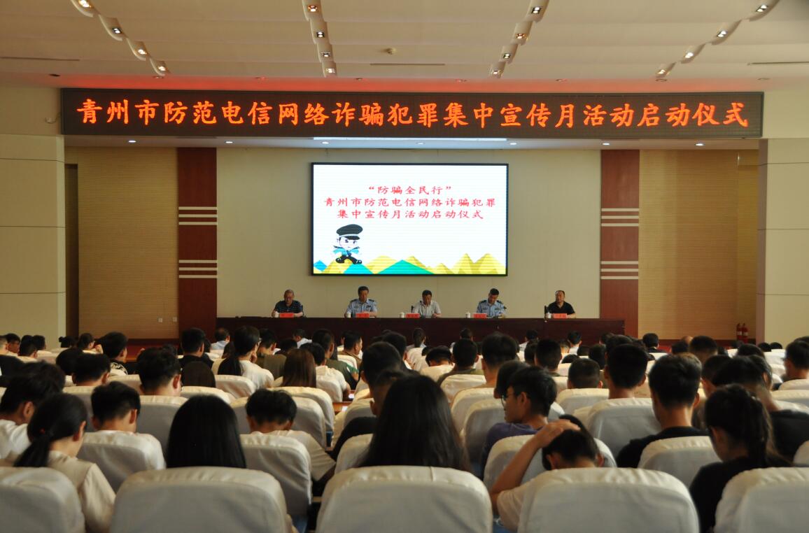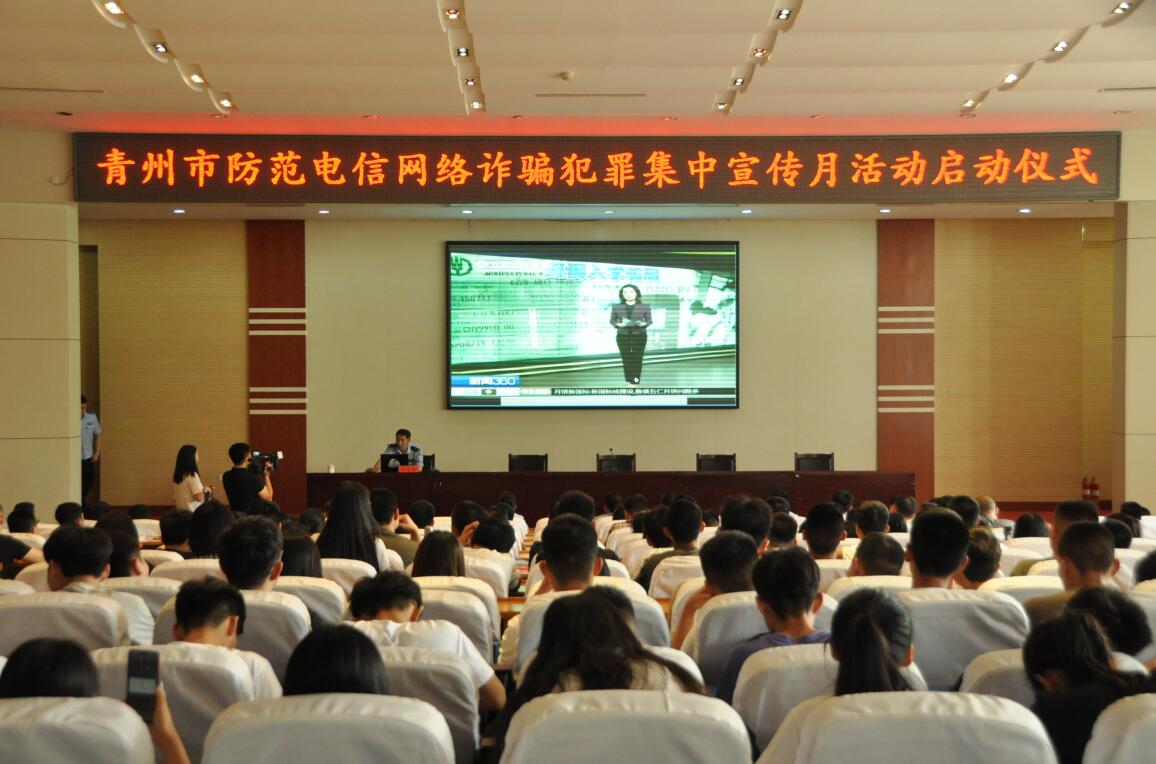 为增强大学生对电信网络诈骗的防范意识,6月3日上午,“防骗全民行”青州市防范电信网络诈骗犯罪集中宣传月活动启动仪式在我院学术报告厅举行。副院长韩振华出席活动,青州市公安局副局长蒋魁曰、反信息诈骗中心民警、我院团委学生处和安全保卫处相关人员、各系院辅导员以及300余名学生参加。