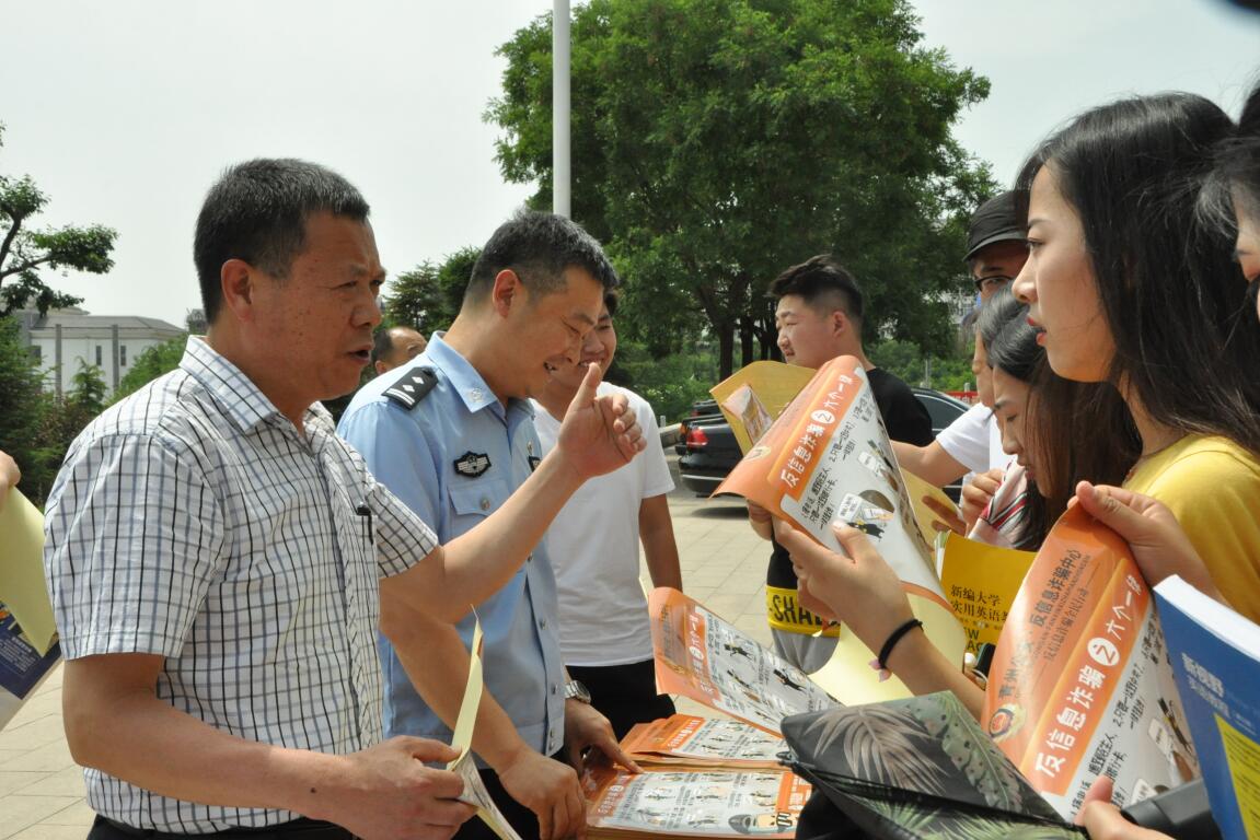 会后,韩振华、蒋魁曰为师生发放防网络诈骗的宣传材料。