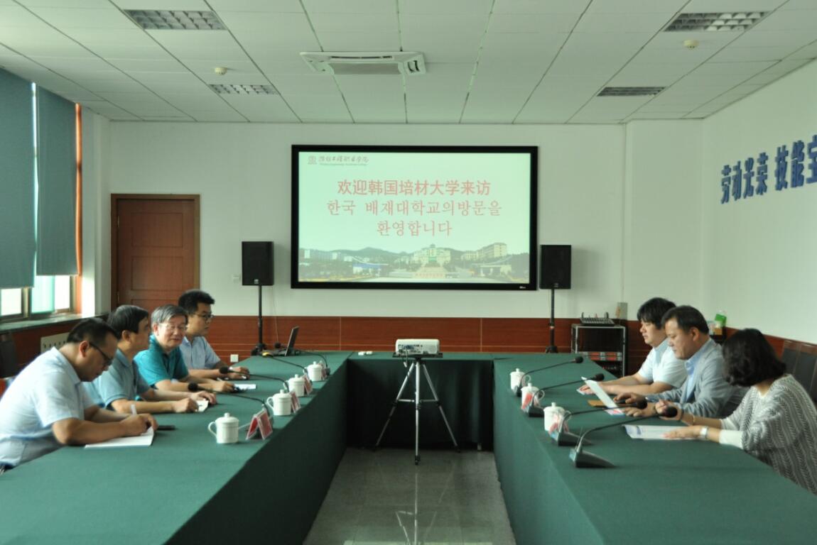 韩国培材大学对外协力处处长崔镐澤一行四人4月22日初访我院,双方就互派交换生,学生专升本、教师博士进修、专业对接、学分互认等方面进行了深入洽谈,签署了《中国潍坊工程职业学院与韩国培材大学合作交流协议书》。座谈会上,王金明代表学院对韩国培材大学在如此短时间内的回访表示感谢。双方就交换生等项目的细节问题进行了深入洽谈,就两校共建韩国语教育研究院进行了深入交谈。韩国语教育研究院将辐射整个山东省,涉及韩语学习、研修留学、互派互访等事项,加强我院乃至全省对韩学习交流工作。