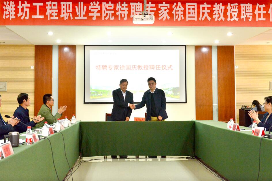 4月30日上午,潍坊工程职业学院柔性引进高层次人才聘任仪式在图书馆606会议举行,党委书记肖明胜、院长高立伯、副院长王守庆出席仪式。党政办公室、教务处、组织人事处相关负责人参加仪式。肖明胜向华东师范大学博士生导师徐国庆教授颁发聘书,高立伯代表学院与徐教授签订聘任协议。