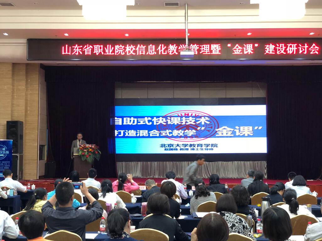 5月17日,由我院主办,北京超星集团、超星职业教育研究院承办的“山东省职业院校信息化教学管理暨‘金课’建设研讨会”在青州市将军山庄举行。院长高立伯出席研讨会并致辞,来自北京大学、华东师范大学、兰州大学等10位知名专家学者及我院优秀教师代表在大会上作专题报告。全省30余所高职院校分管教学领导、教务处长、专业负责人及骨干教师近240人参加了会议。会议由副院长王守庆主持。