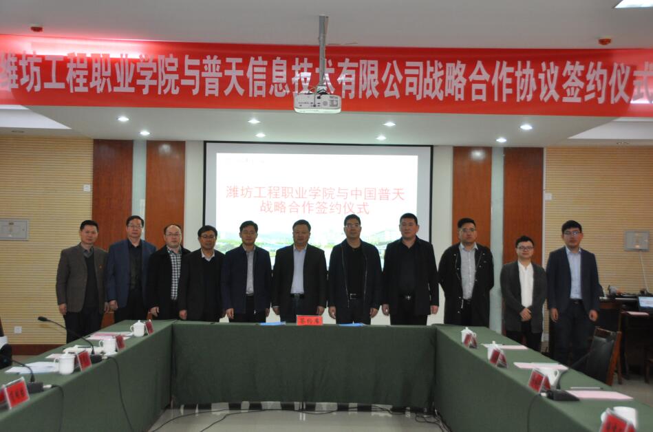 4月4日上午,我院与普天信息技术有限公司战略合作签约仪式在图书馆606会议室举行。党委书记肖明胜出席签约仪式并致辞,普天信息技术有限公司副总经理许同丰、山东区域总经理梅峰文、山东区域技术总监白正伟等一行5人出席,学院副院长王守庆主持签约仪式,教务处等相关部门负责人及有关人员参加签约仪式。