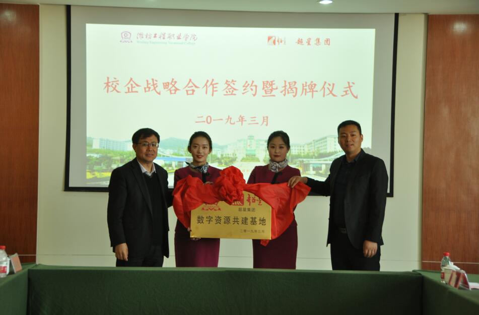 超星集团总经理史强与院长高立伯共同签订了战略合作协议,并与办公室主任赵庆松、教务处处长张荣斌共同为“信息化教学应用中心”“资源共建基地”揭牌,双方战略化合作正式拉开了帷幕。