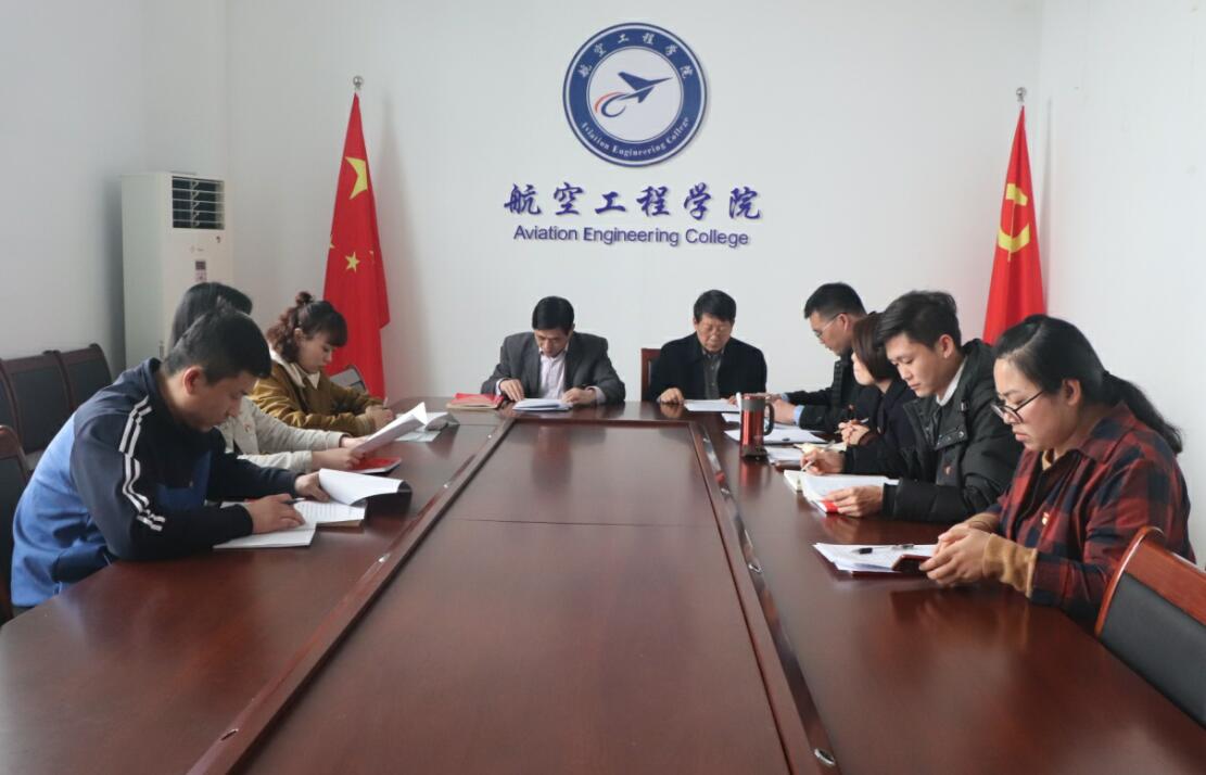会上,王金明对航空工程学院党支部各项工作给予了充分的肯定并鼓励该院学院在院党委的正确领导下,在混合所有制改革等方面取得更大的成绩。随后,王院长对今后工作提出了几点要求:一是要进一步加强党建在日常工作的统领作用,提高政治站位;二是深化校企合作力度,继续与山东新锐通航有限公司、北京华联航空有限公司、青岛国际机场、广州白云机场、福州长乐机场、南京禄口机场、山东太古飞机工程公司的合作;三是要开展好中小学生研学和社会服务工作;四是深化日常教学管理,争取在混合所有制改革、特色项目建设、专业课程改革、技能竞赛、质量工程项目建设方面取得新的突破;五是将安全工作放在首位,树牢“安全稳定工作”压倒一切的理念,树牢“红线意识”,保持“底线思维”,确保实训室的安全、宿舍安全以及师生的生命交通财产安全。