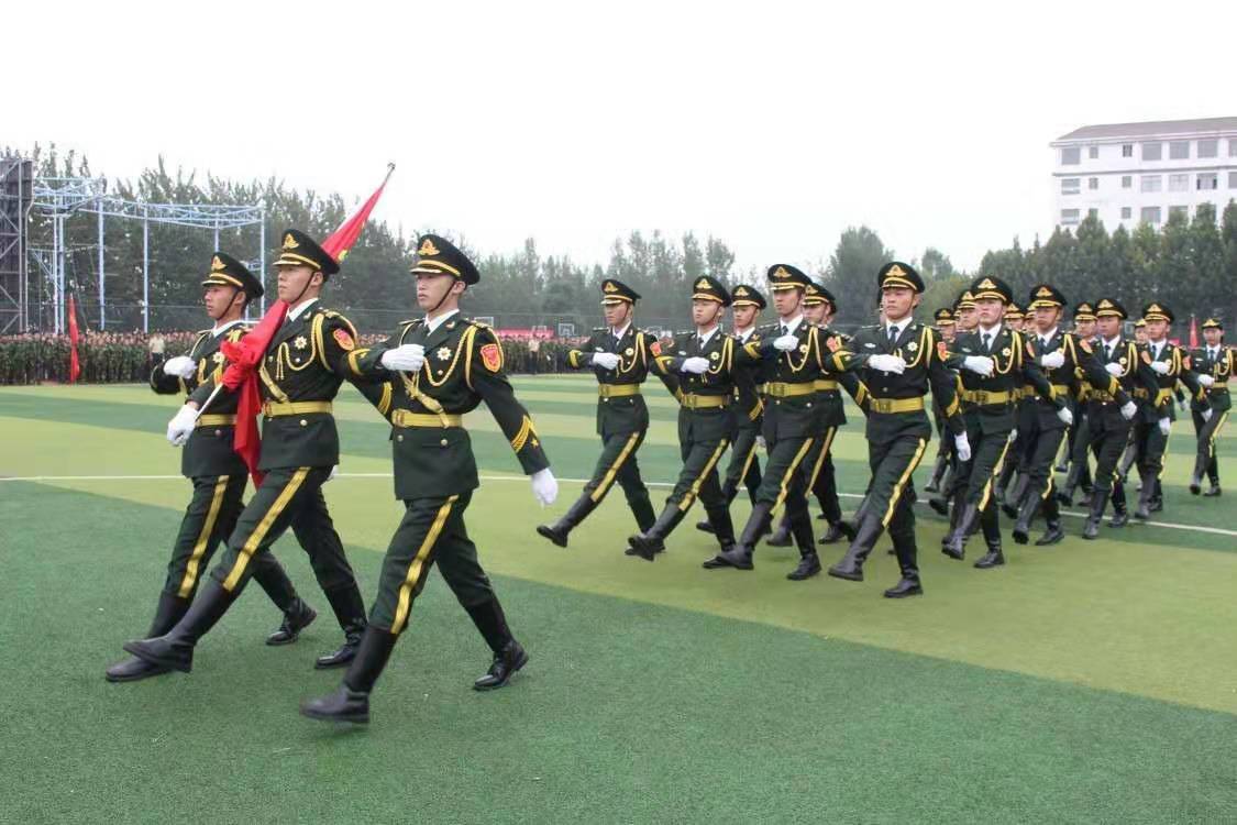 大会首先进行升旗仪式。士官学院国旗护卫队,身着新型礼服,迈着铿锵有力的步伐,护送着鲜红的国旗走向升旗台,气氛庄严肃穆。伴随着激昂的《义勇军进行曲》,五星红旗在庄严注目中冉冉升起,承载着新的希望,昭示着青年人激情昂扬的斗志。随后,2019级新同学组成的50个连队,在雄壮的进行曲中,迈着整齐划一步伐依次通过主席台。飒爽的英姿、整齐的队列、嘹亮的口号、坚定的步伐充分展现了全体新生蓬勃向上的精神,赢得了在场观众的阵阵掌声。