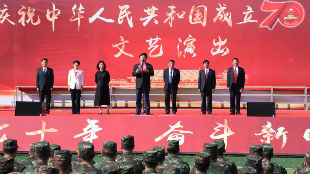 学院党委书记肖明胜同志致辞并宣布我院庆祝中华人民共和国成立70周年系列活动正式启动。他首先代表院党委、院行政向各位出席活动的领导和嘉宾表示热烈的欢迎,向精心组织策划、付出辛勤努力的老师们、同学们致以诚挚的问候。他指出,70年来,在中国共产党的领导下,亿万人民以卓越的聪明才智和坚韧不拔的奋斗精神,谱写了一曲又一曲波澜壮阔的不朽篇章,综合国力不断增强,国际地位空前提高。伴随着伟大祖国前进的步伐,我院各项事业也实现了新的跨越。希望参加演出的师生们尽情挥洒激情与才华,谱青春华章、展时代风采,绘出校园精神文明建设的靓丽风景。