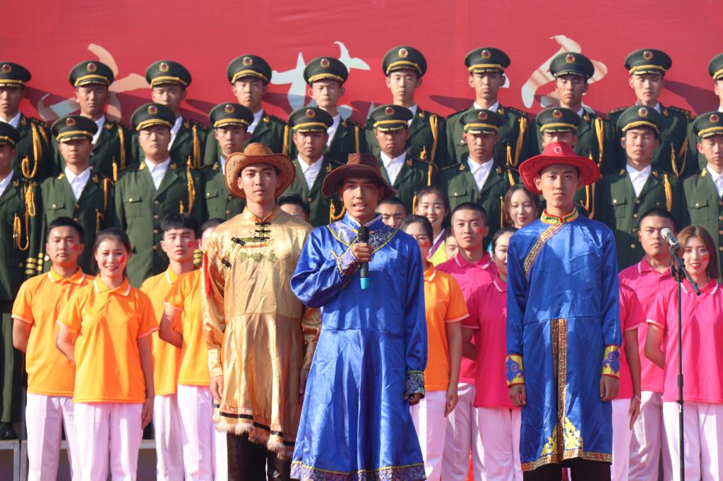 接下来,我院“辉煌七十年 奋斗新时代”庆祝中华人民共和国成立70周年文艺演出正式开始。歌伴舞《阳光路上》拉开了文艺演出的序幕,精彩节目轮番登场。情景舞蹈《乐享云端》充分展现了我院航空工程学院师生的靓丽风采;学院直招士官生表演的歌舞《生来倔强》《假如战争今天爆发》激情演绎出当代军人的理性和责任;中专教学部姑娘们《丽人行韵》的曼妙舞姿带领大家领略了江南水乡的烟雨景色;歌伴舞《春天的故事》《我爱你中国》《我的深情为你守候》紧扣演出主题,唱出了伟大祖国七十年的风雨历程和辉煌成就,深切表达出中华儿女对祖国的深厚情谊,将演出推向一个又一个高潮。演出最后,学院各民族学生同台朗诵,向伟大祖国献上最诚挚的祝福。在场师生爱国热情高涨,全体起立,一起摇动手中的国旗,共同唱响《我和我的祖国》,用歌声表达爱国之情和报国之志。演出在激昂的歌唱声中落下帷幕。