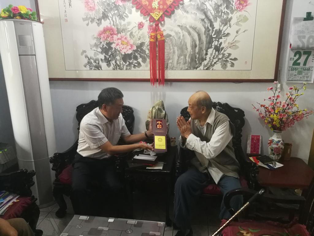 9月27日,学院党委副书记、院长高立伯一行走访慰问了99岁高龄的离休老干部、省级劳模高维志。在高维志家中,高立伯同老人促膝交谈,关切询问老人身体、生活等情况,与他聊家常、忆往事,并将“庆祝中华人民共和国成立70周年”纪念章、省工会的慰问信和学院慰问金亲自交到老人手上,对老人为新中国成立、为党和人民事业、学院发展做出的奉献、付出的心血汗水表示感谢,在喜迎新中国成立70周年之际,祝老人节日快乐、家庭幸福,希望老人保重身体,继续为学院发展多提宝贵意见和建议。
