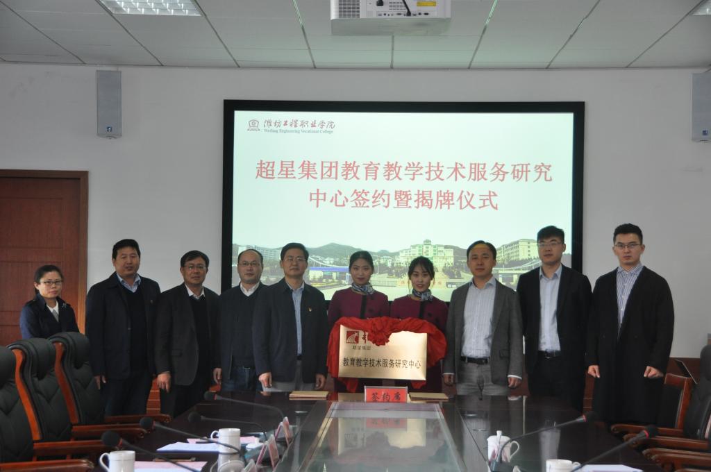 11月4日上午,我院与超星集团合作共建的教育教学技术服务研究中心签约暨揭牌仪式在图书馆220会议室隆重举行。超星集团总经理史强、超星集团山东区域经理魏玉超、山东区域经理王亚然、超星职业研究院副院长耿浩浩,潍坊工程职业学院副院长王守庆、党政办公室、教务处、科研产业处主要负责人出席了揭牌仪式。