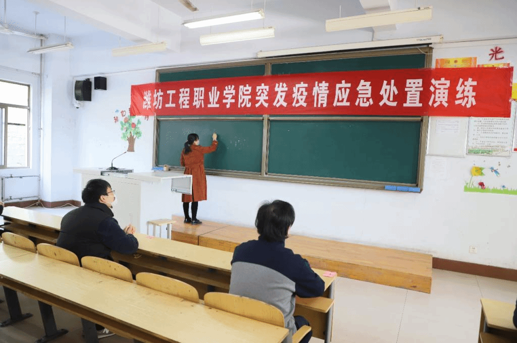 为做好2020年(春季)学期开学准备,坚决打赢开学疫情防控攻坚战,4月22日至23日,潍坊工程职业学院组织开展了疫情防控应急处置演练和疫情防控培训。院领导肖明胜、高立伯、李琳、王金明、那菊华、王守庆参加现场演练,各单位主要负责同志、各系院团总支部书记、辅导员、教师代表、防控办公室各成员单位全体人员等参加活动。