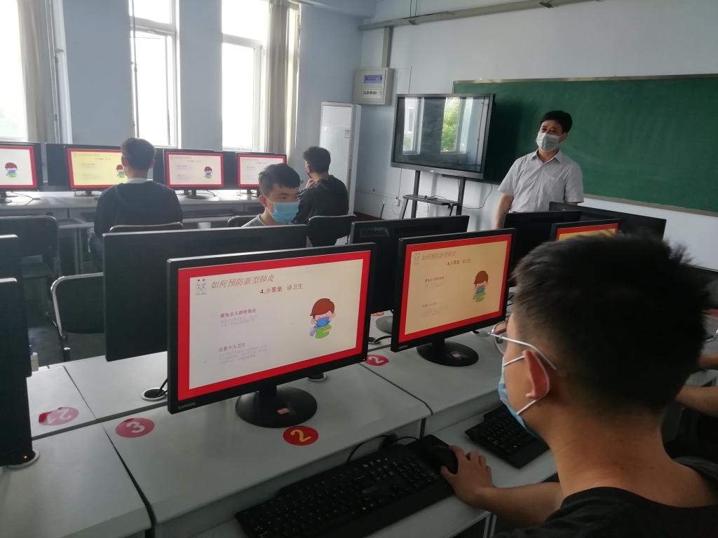 为贯彻落实省教育厅及学院疫情防控工作有关要求,保证返校学生复学各项工作顺利进行,5月25-26日,我院聚焦“普及防疫知识、弘扬抗疫精神”,为全体返校学生开展了“复学第一课”。基础教学部围绕“爱国主义教育和思想政治引领” 和“心理健康与生命安全教育”主题,组成专项工作组,精心选择教学内容,分赴各系开展“复学第一课”。各系院部党支部(总支)书记围绕“防疫培训与校园疫情防控要求”,牵头组建“复学第一课”教学团队,组织集体备课演练并亲上第一线为学生奉上“复学第一课”。