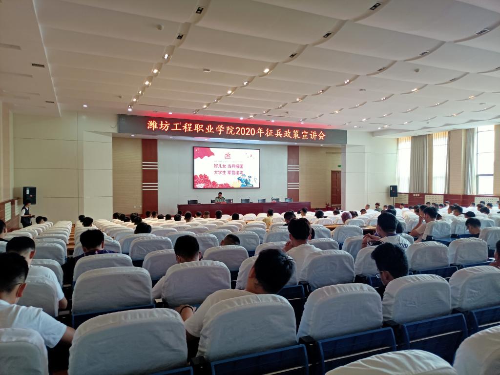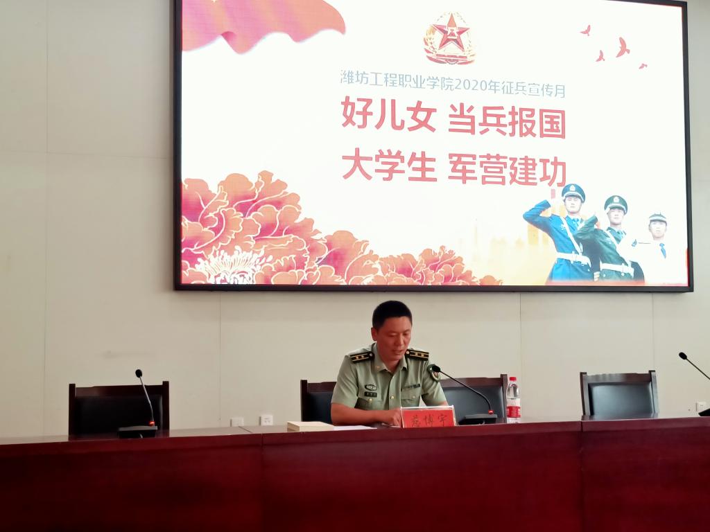 7月3日,学院召开2020年征兵政策宣讲会,青州市武装部慈博宇为我院学生进行征兵宣讲。团委学生处、学院征兵服务站相关人员与200余名学生参加了活动。