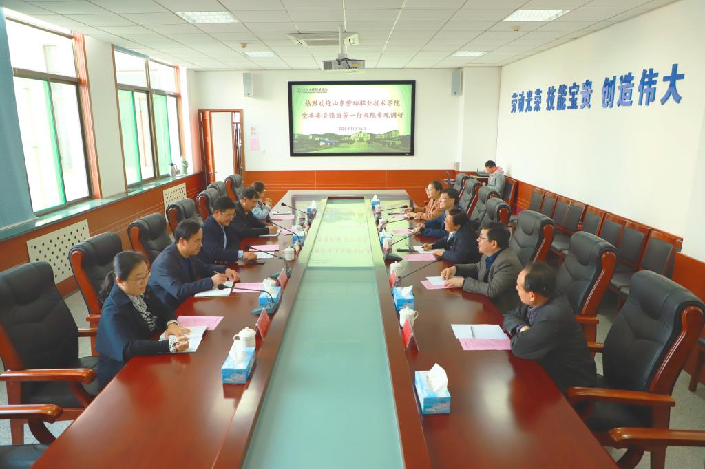 11月16日,山东劳动职业技术学院党委委员、宣传部部长张丽芳一行5人,来我院参观调研。副院长王守庆出席座谈会,相关部门及系院负责人参加会议。