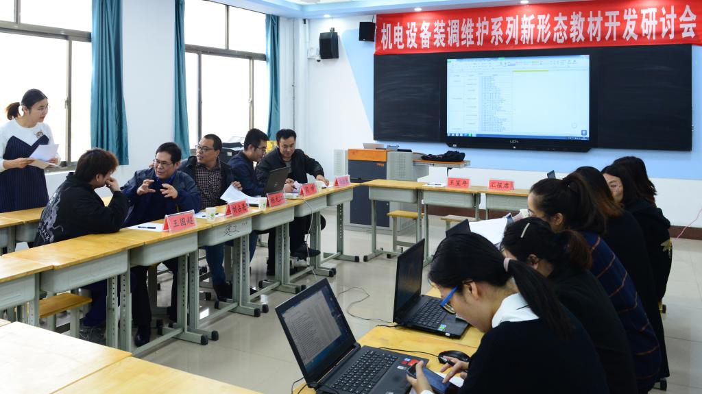 11月14日,由华东师范大学专家团队、学院一线教师和企业技术专家组成的教材开发团队,针对本年度立项的新形态教材建设项目,集中开展能力清单开发梳理工作。副院长王守庆要求各个项目组树立标准意识,真正按照典型岗位职业能力要求设置教材内容体系,为后期的教材编写正好方向、打好基础。研讨会上,华东师范大学职业教育与成人教育研究所李政博士对新形态教材的编写流程、关键步骤以及重点问题进行了讲解。